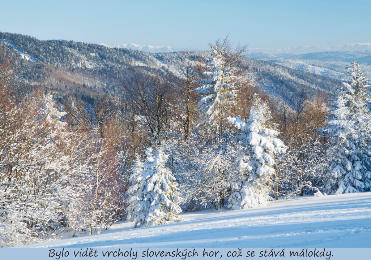 Výlet jsem si naplánovala na pondělní odpoledne. A byla to dobrá volba. Nádherné počasí, úžasná viditelnost a vše pod nadýchanou sněhovou peřinou. Tu krásu neumím popsat slovy, snad fotografie poví více. I moje dušička byla v peříčku. Lékaři tvrdí, že po prodělaném covidu získá člověk imunitu na 3 až 6 měsíců. Věřím, že mají pravdu a já jsem během výletu nikoho neohrozila.