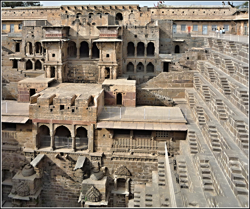 Čand Baori je největší stupňovitá studna (stepped well) v Rádžastánu a jedna z největších v Indii. Byla založena králem Čand(r)ou někdy v 8. – 9. století. Není to studna v pravém slova smyslu, protože do ní neústí žádný pramen. Sloužila jako cisterna či nádrž na dešťovou vodu, které zde v období monzunů spadne spousta. Dočetl jsem se, že po období dešťů je plná nejméně do dvou třetin.