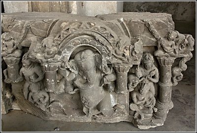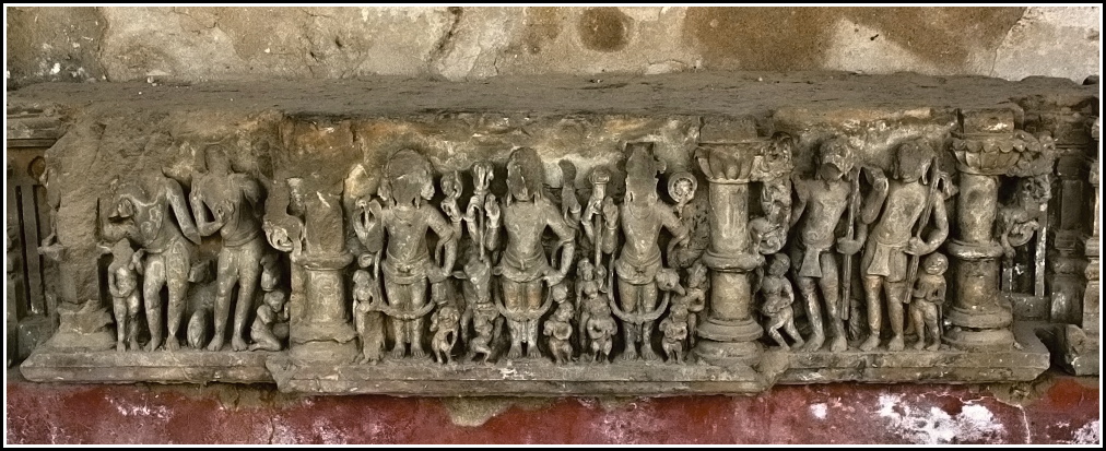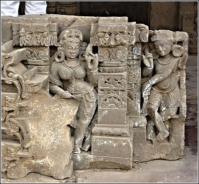 Řádili tu fanatici? Hodně postav na reliéfech mělo poničené obličeje. Osobně soudím, že jim je v pozdějších dobách pozuráželi muslimové, jimž jejich náboženství zakazuje zobrazovat lidi a zvířata. Nemám to potvrzeno, ale za vlády císaře Aurangzéba z dynastie Velkých Mughalů, který byl muslimským náboženským fanatikem, to bylo docela dobře možné.