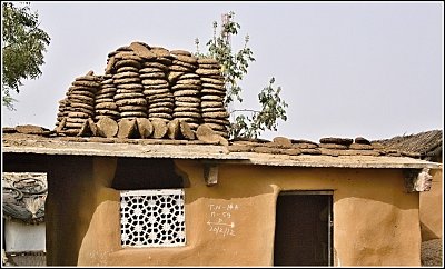 Sušící se palivo. Na kilometry daleko od Abaneri nejsou žádné zdroje dřeva, které by stály za řeč, a tak se topí směsí slámy a dobytčího trusu, uhnětenou do takovýchto koláčovitých tvarů.