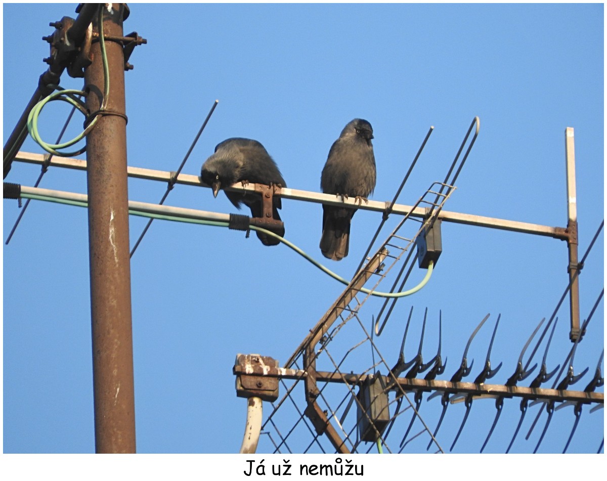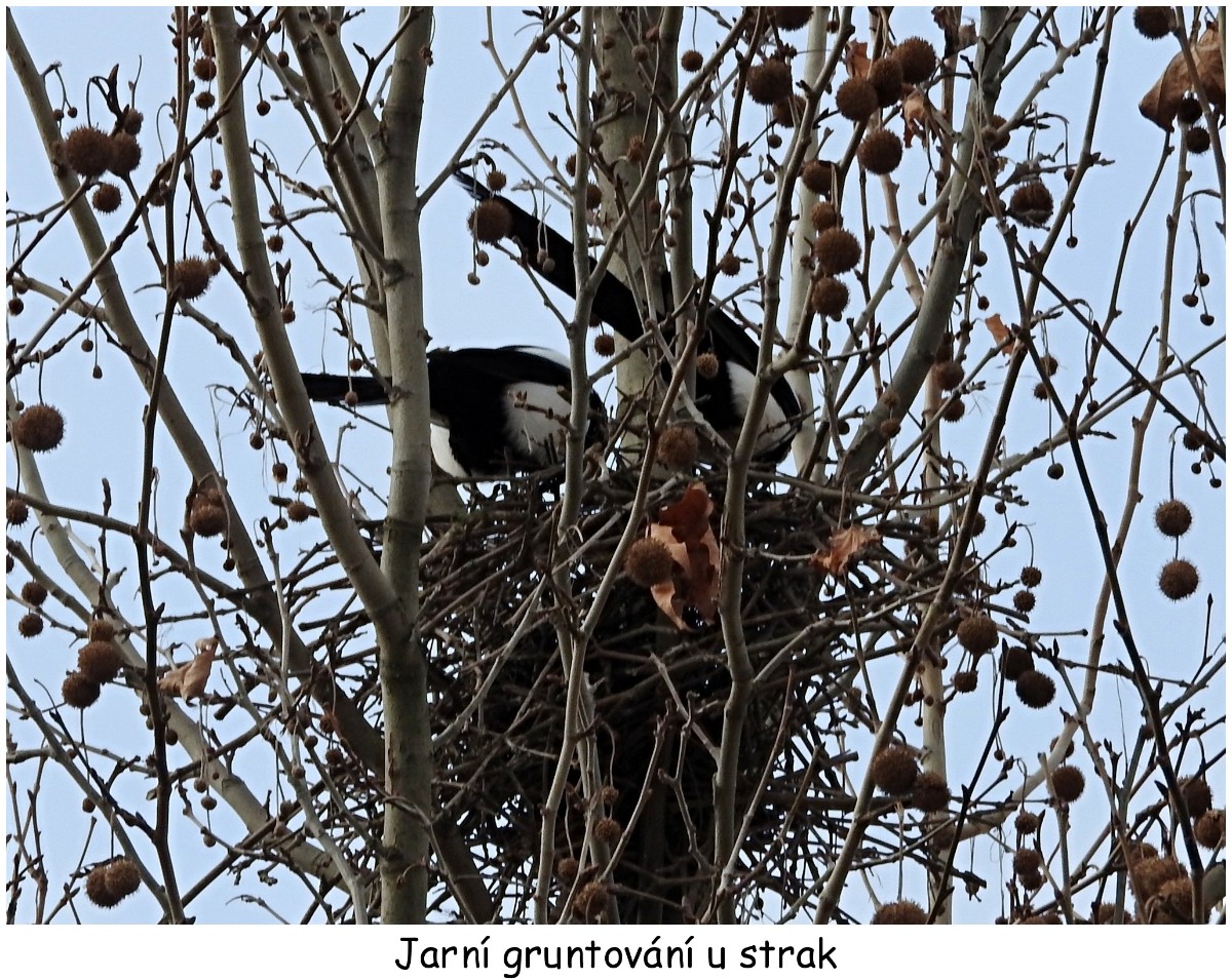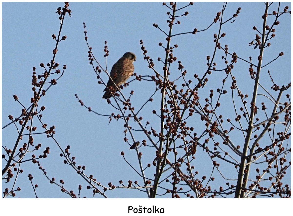 Teď tedy máme začátek března a příroda se pomalu probouzí. Sluníčko se snaží a brzy vyžene šedivou námrazu i ze zatím stinných koutů. Vrabčáci si natřásají peří před svými obýváky v okapu u garáží, straky začaly s jarním úklidem ve svém hnízdě, holubi hřivnáči se vrátili ještě dříve než špačci, hrdlička pospává na drátě, mezi větvičkami se proplétají stehlíci a loví si svou snídani, sojky si šuškají o lásce, zajíce ještě trochu zebou nožky a kavky se vystavují jako modelky na anténě.