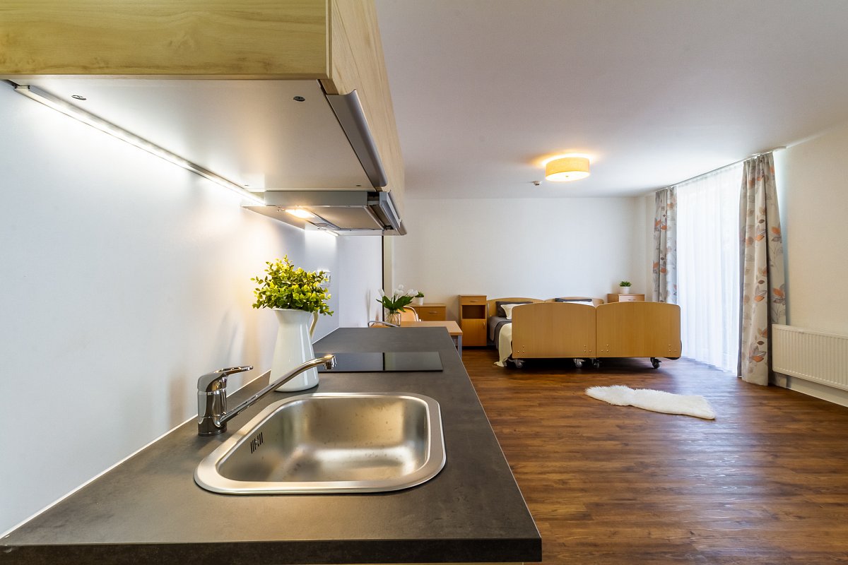 V našem domově často řešíme téma vlastního nábytku. Apartmány si mohou klienti samozřejmě kompletně vybavit svým nábytkem, na který jsou zvyklí. Pokud tuto možnost nevyužijí, rádi jim nabídneme apartmány vybavené standardním nábytkem: polohovací lůžko, noční stolky, židle, stůl, komody, prostorné skříně s úložným prostorem a kuchyňská linka. Snažíme se tvořit pro naše klienty jejich nový domov a podporujeme myšlenku, že si s sebou mohou přinést nejen fotografie, drobné upomínkové předměty, obrazy, dekorace, ale často i nábytek. V pobytové sociální službě s ohledem na velikost pokoje, jenž má kolem 25 m², je však reálné vzít si s sebou jen nějakou komodu, židli, stolek a křeslo. Naší podmínkou je, aby na pokoji zůstalo polohovací lůžko, které je nezbytné pro péči o klienty.