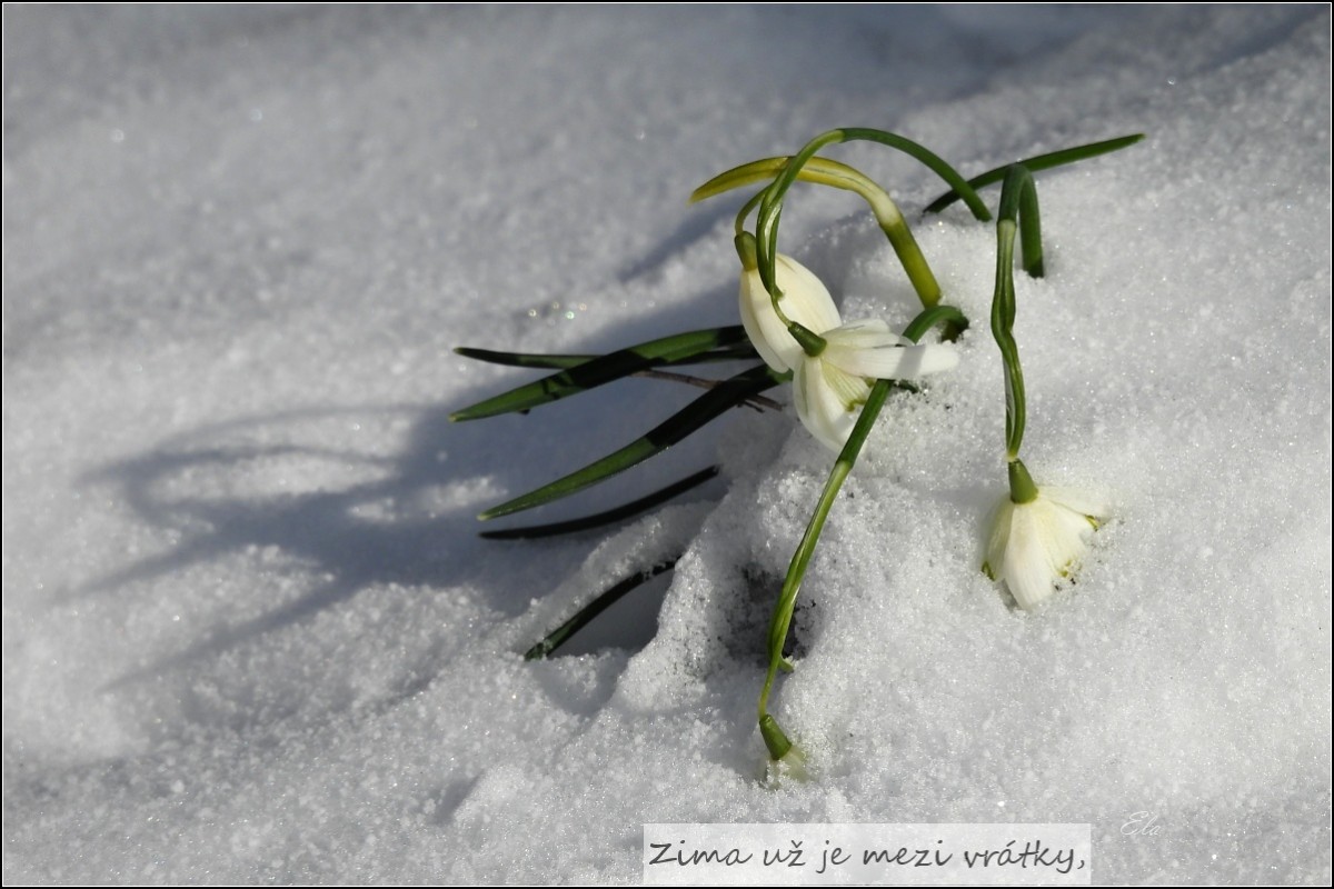 Zima se nechce vzdát, je marnivá a tvrdohlavá, parádivá. Ale také krutá. Nazdobila do bílé stromy, meze, zaklela do sněhu a ledu kaluže i jarní kvítí, vše, co připomíná jaro.
