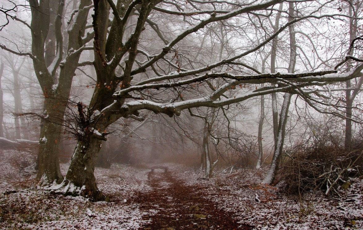 Únor byl také v zajetí sněhu. Zuzana Šišková narazila Poblíž Plzně na tajuplné místo se starými holými stromy, které napřahovaly své větve skrze mlžný opar.