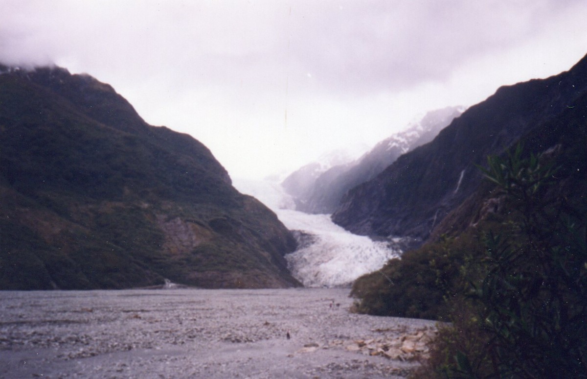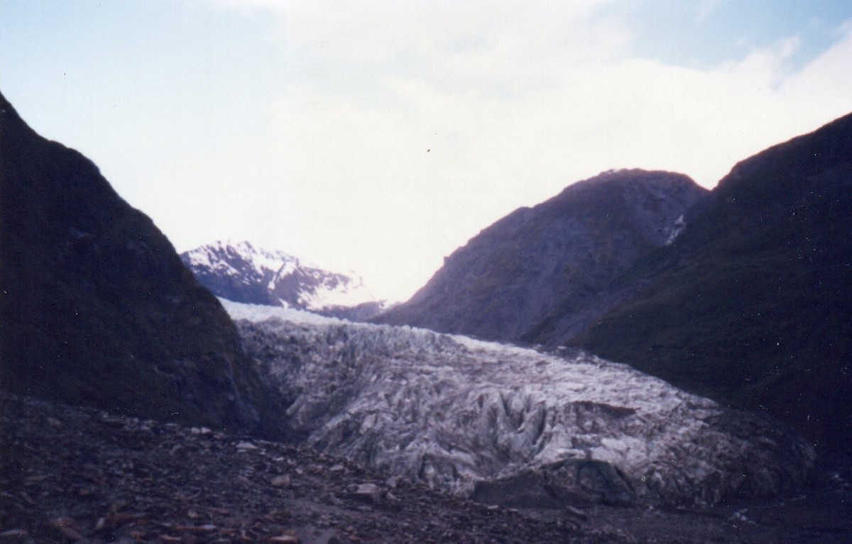 Odpoledne jsme dorazili k ledovci Franz Josef, který nese jméno tohoto “našeho” císaře od roku 1865, kdy byl takto pojmenován německým geologem Juliem von Haastem. Při pozorování splazu ledovce jsme potkali skupinu 24 českých turistů, kteří cestovali v mobilních karavanech. Po pěší procházce k úpatí dalšího ledovce Fox Glacier jsme se ubytovali v motelu s výhledem na nejvyšší horu Nového Zélandu – Mount Cook (3764 metrů). Tento den jsme cestovali společně s italskou stopařkou Alessandrou z Benátek. Strávíme s ní tři dny a manžel, který v té době ještě aktivně nemluvil italsky, se s ní snadno domlouval tak, že mluvil španělsky a ona mu odpovídala ve své libozvučné mateřštině. Alessandra svůj obdiv nad přírodními krásami Nového Zélandu vyjadřovala často opakovanou větou “é proprio bello” (je to skutečně krásné). Tento výraz v italštině nikdy nezapomenu.