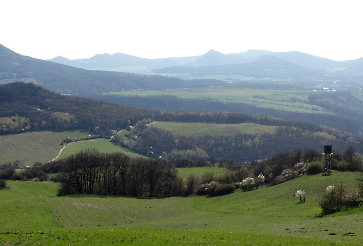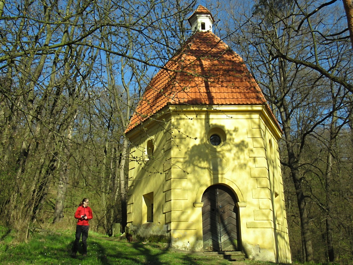 Šli jsme procházkou tichým lesem bez lidí, po zelených loukách, vzácné ptáky zde žijící jsme bohužel neviděli, ale cestou jsme potkali tři koníky. Dcera je všechny znala, krásný hafling se nechal hladit, všude rostly lesní kytičky. Cílem naší procházky byla již zmíněná kaplička. Kdysi jsme tam s mužem byli na procházce, ale tentokrát nás naše milující dcera protáhla opravdu celým kopcem. Připadala jsem si jako oslík ve Shrekovi. Na otázku, zda už tam budeme, byla vždy stejná odpověď. Jo, ještě kousek. Nakonec jsme kapličku našli, důchodci si postěžovali na bolesti nohou, ale výhled na Středohoří to napravil. Bohužel, bylo trochu mlžno, ale Lovoš - tam jsem byla pracovně, Kamýk - tam se určitě podíváme a Milešovka - tak tu vzdávám, vidět byly. Ledové jámy tentokrát byly bez sněhu, chladno se nekonalo, ale hezky tam bylo.