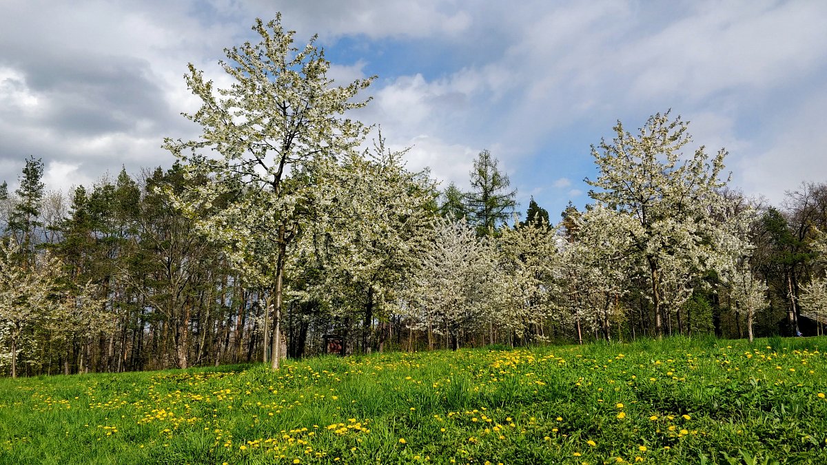 Naučná stezka není dlouhá, měří jen cca 5 km, ale v lese a všude v okolí je spousta cest a cestiček, takže zde můžete chodit dostatečně dlouho. K odpočinku vám poslouží  lavičky a altánky, ale i rozlehlé louky, kde si můžete udělat piknik a strávit zde klidně celý den. Nejen pro děti je zde zookoutek, ve výběhu můžete obdivovat krásu koní i stádo koz. A co může být v současné době romantičtější, než místní rozkvetlá třešňová alej.