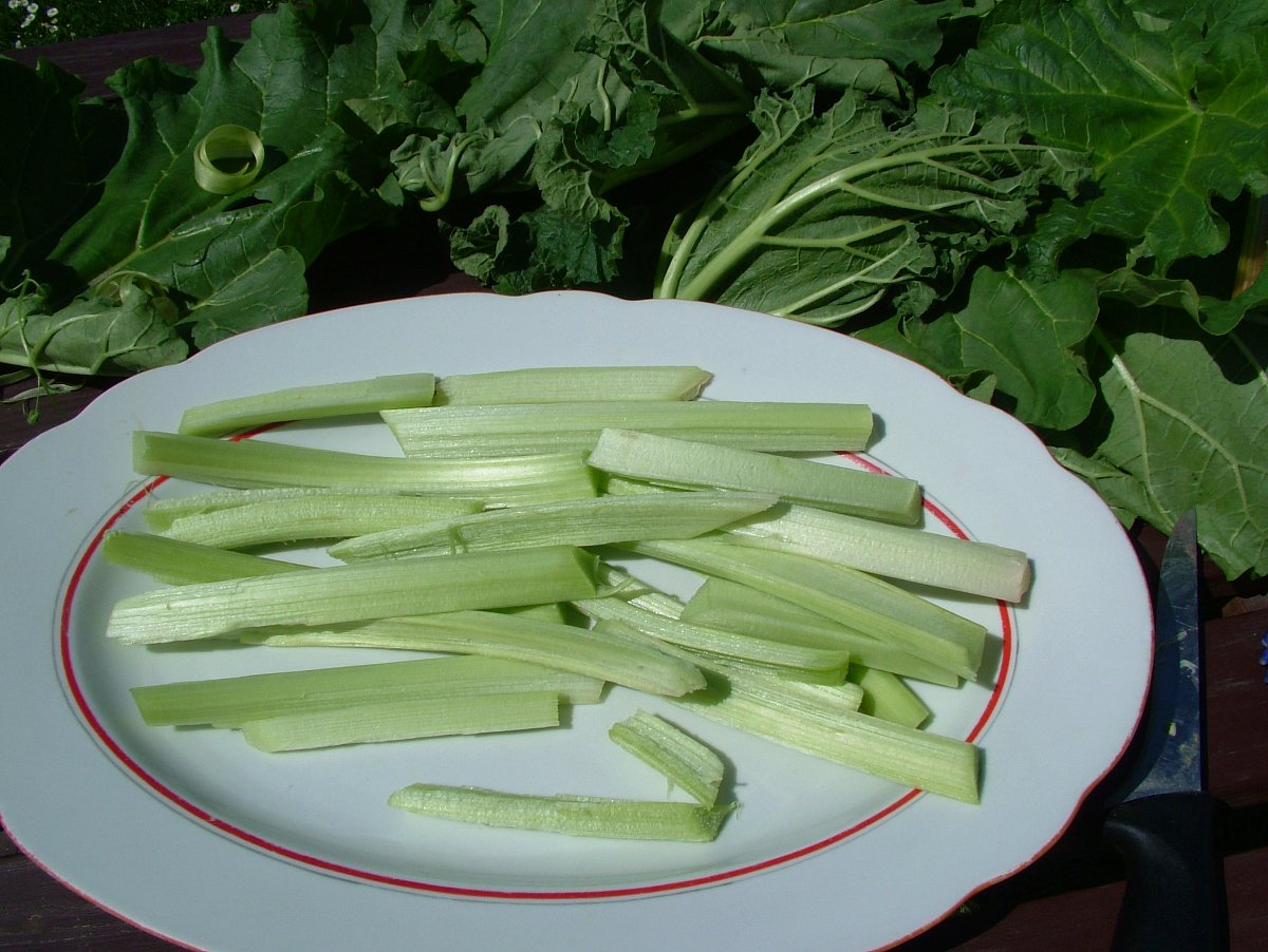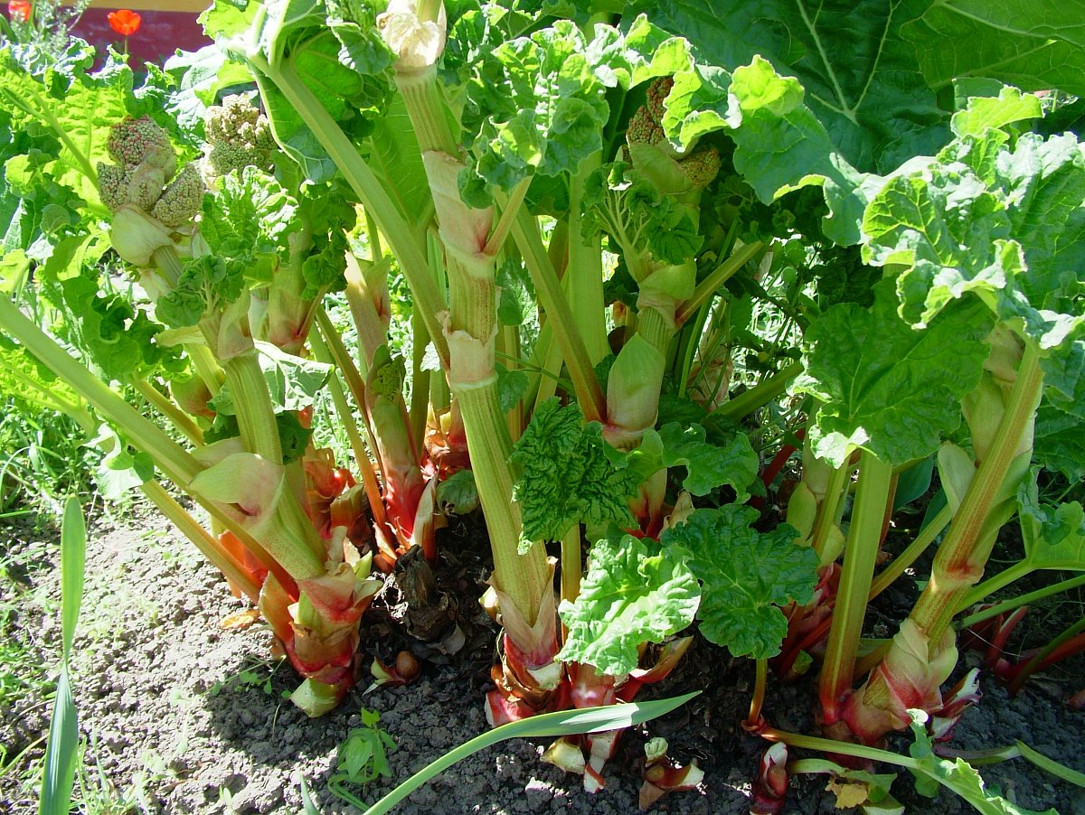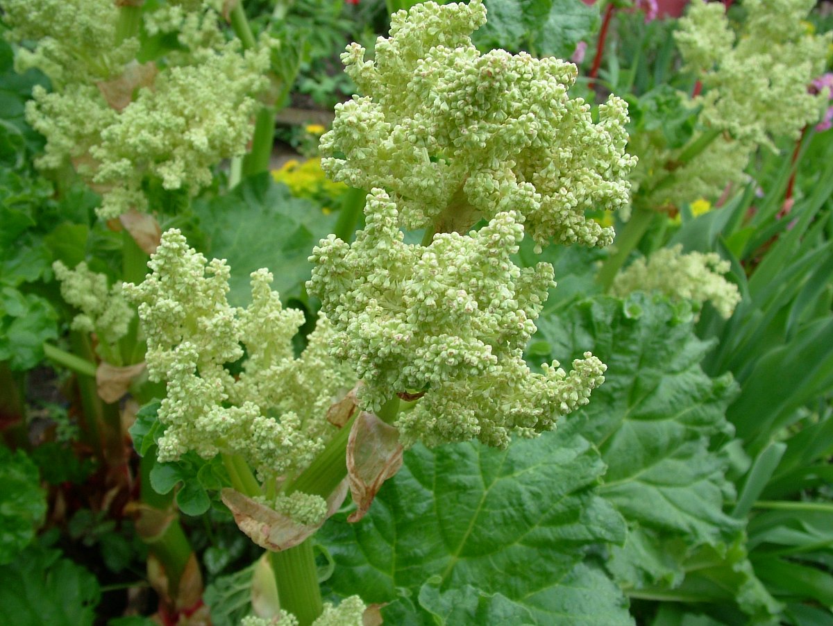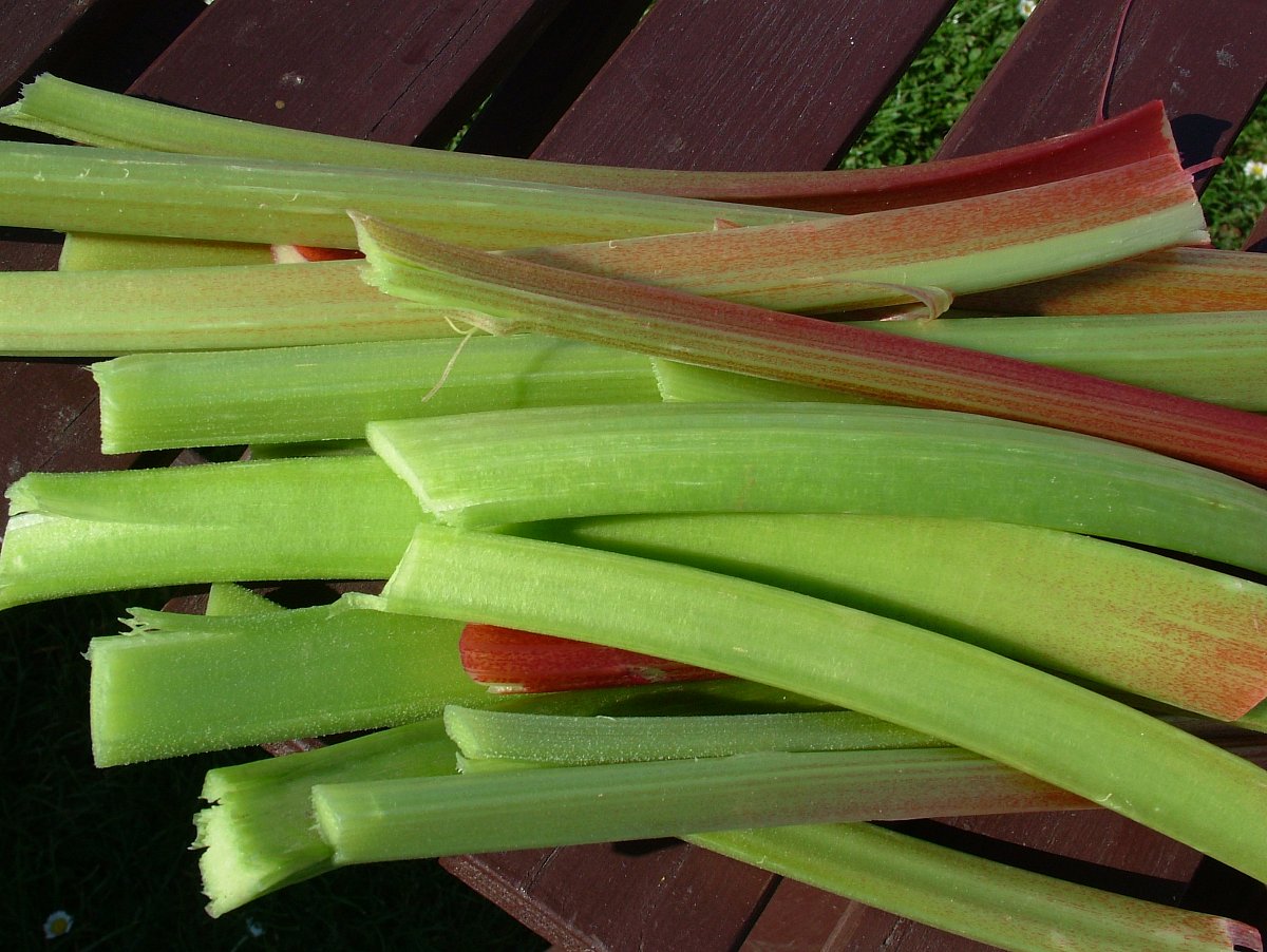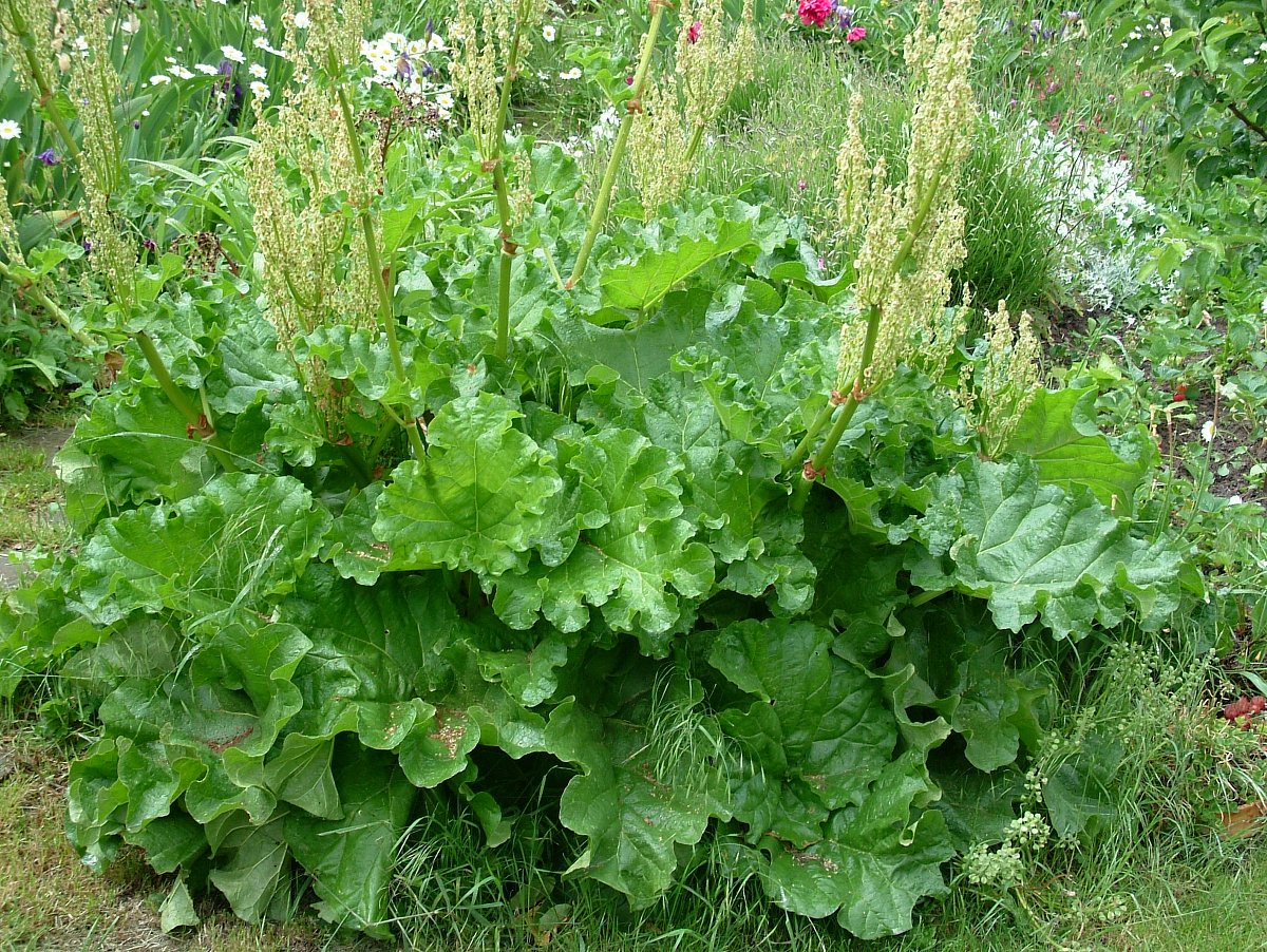 Rheum rhabarbarum, lidově rebarbora. Je to vytrvalá, docela mohutná rostlina, může dorůst při kvetení až do výšky 2,5 m. Vysoká dutá lodyha nese latnaté bílé květenství, plodem je nažka. Listy jsou široké s dlouhými řapíky, které jsou často zbarvené do červena. Zatímco řapíky konzumujeme, listové čepele dáváme do kompostu, jinak se nevyužívají. Ořezáváme, lépe vylamujeme, listy odspodu, aby na zemi nehnily a neukrývaly slimáky.