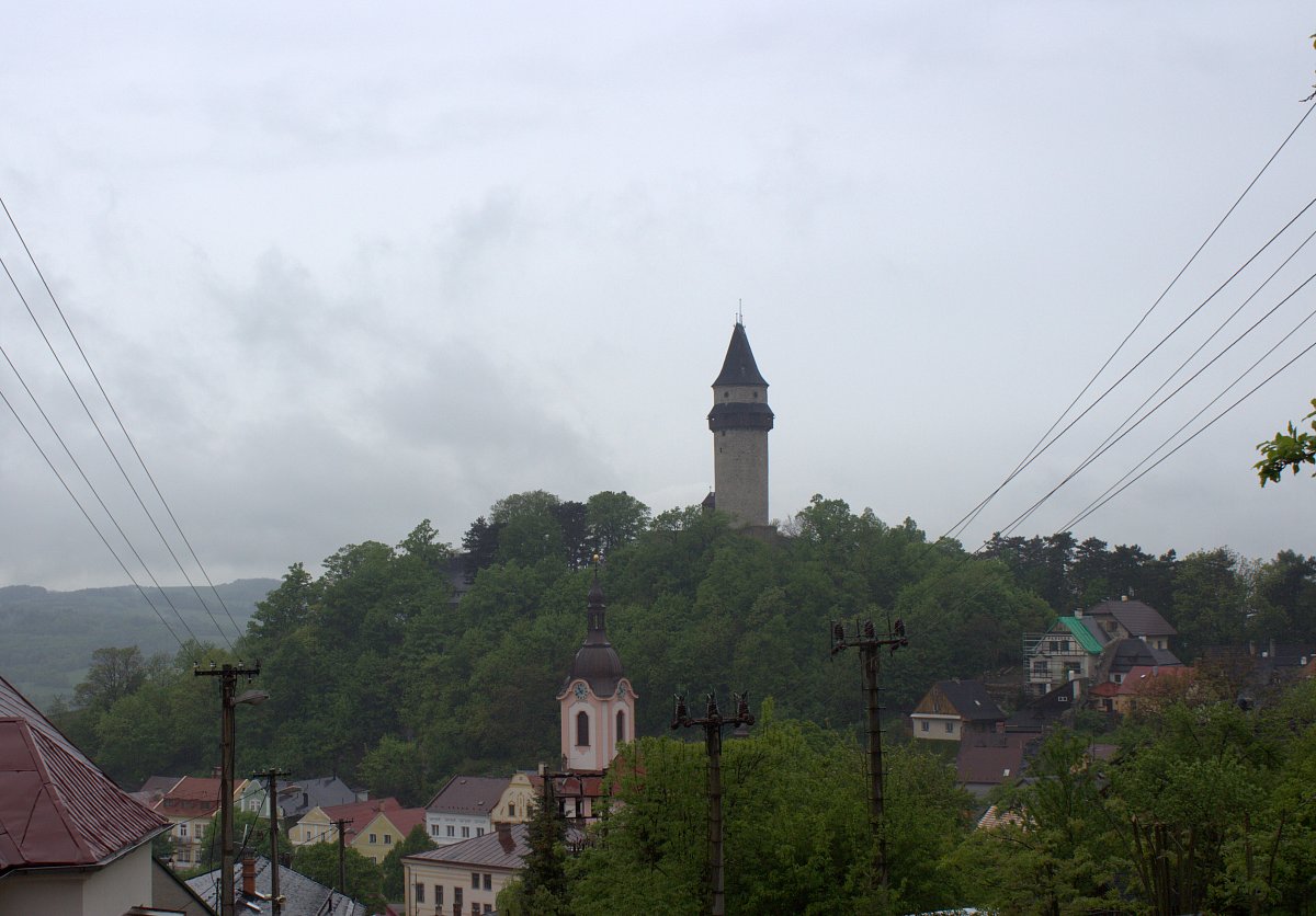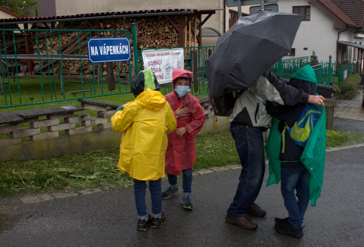 V rádiu hlásili, že bude polojasno, ale takovou slotu jsme opravdu nečekali. Když jsme vystoupili po 1,5 hodinové cestě vláčkem ve Štramberku, tak to začalo. Napřed mírný déšť, potom došlo na liják. Návštěvu botanické zahrady a prozkoumání jeskyně Šipka jsme museli vynechat. Kluky to mrzelo, zajímá je totiž etnografický vývoj, viděli v TV nějaký dokument, a tak teď pořád probírají vznik života na zemi.