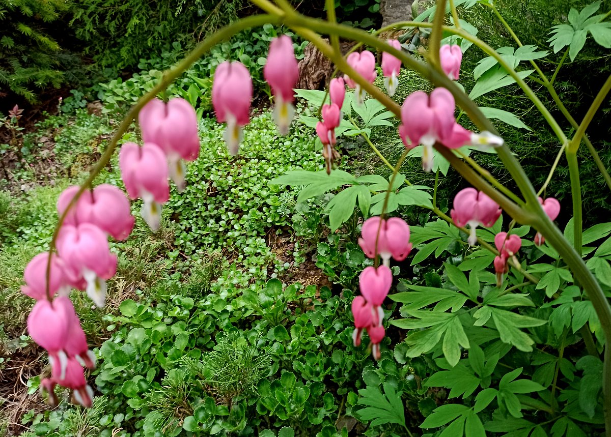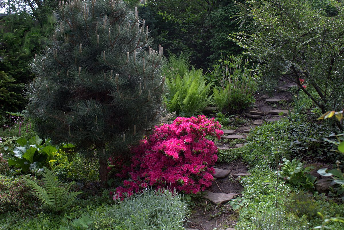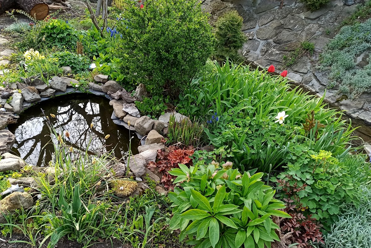 Ona ta zahrádka není úplně moje. Bydlíme v domečku hned vedle potoka a za ním je takový svah, který byl docela zanedbaný. Chtěli jsme ho odkoupit, ale povodí Moravy, kterému pozemek patří, nám ho prodat nemohlo. Tak jsme si ho "pronajali" a nikdo neprotestuje, že jsem ho osázela stromky, trvalkami a skalničkami. Nanosila jsem si z okolí kamení a vytvořila takovou přírodní skalku.