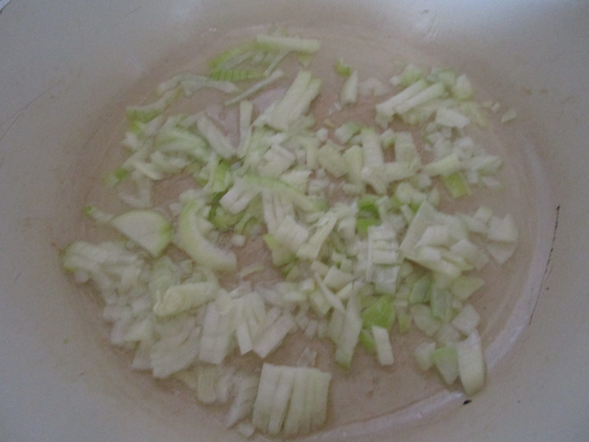 Na pánvi na tuku jsem zpěnila cibuli a přidala "dřevěné kuře"