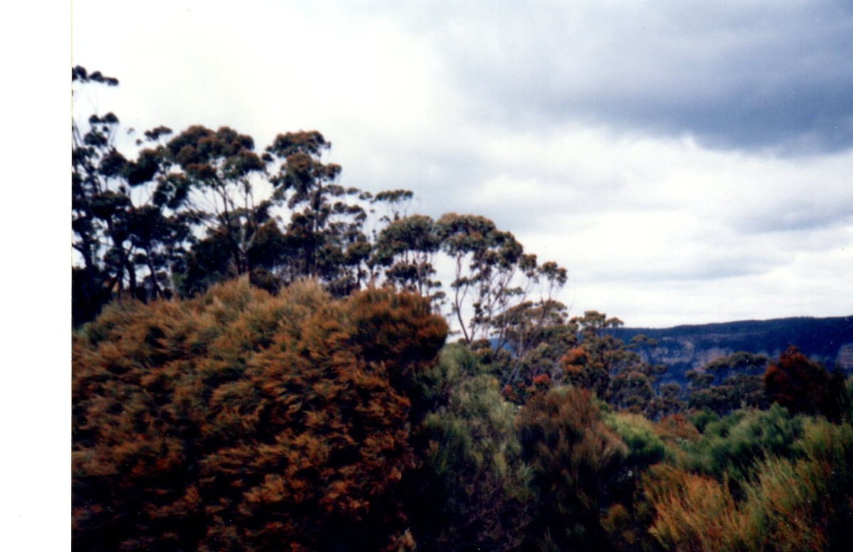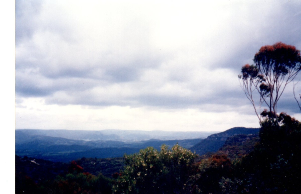 Večerní procházka na hlavní třídě v Richmondu nám připomíná filmy z australského vnitrozemí, kterému “Aussies” (slangový výraz pro Australany) říkají “outback”. Skutečný “outback” je však dále ve vnitrozemí ve středu australského kontinentu – je to rozsáhlá vysušená a téměř neobydlená oblast. V létě je tam strašné vedro a ztratit se tam určitě není dobrý nápad. Noc v Richmondu nebyla moc příjemná, protože tam má základnu australské letectvo a jeho letadla startují za hrozného lomozu i v noci. Míříme na město Katoomba, ale ještě před ním uhneme po silnici Drive 5 do malebné krajiny Modrých hor. Jejich název není náhodný, protože jsou porostlé eukalyptovými lesy, které jsou při pohledu z dálky skutečně namodralé. Zastavujeme na několika místech, odkud je výhled do velké dálky. Lesnatá krajina je zpestřená skalnatými útvary, které jsou nápadně podobné našemu Českému ráji. V lese poletují barevní a hluční papoušci. Ještě více se ale ozývají místní “cikády”, které jinak tichou procházku místy promění v “decibelový” zážitek. Na jedné z vyhlídek lze vyjet ještě výše visutou lanovkou (Skyway). Pokračujeme směrem na Zigzag Railway u města Lighgow. Některé dny si tam lze udělat projížďku vláčkem s parní lokomotivou. Do Sydney se vracíme přes severní hřebeny Modrých hor. Je to dlouhý a dost nudný úsek, kde jsou nejprve nekonečné eukalyptové lesy a potom trochu veselejší ovocnářská a nakonec dobytkářská oblast. Obědváme v místním “café” s výhledem na národní park Blue Mountains a vzdálené pobřeží, včetně města Sydney. U blízkého informačního střediska jsme pozorovali domorodého Austrálce, který si vydělával na živobytí troubením na tradiční primitivní hudební nástroj a doprovodným tancem.