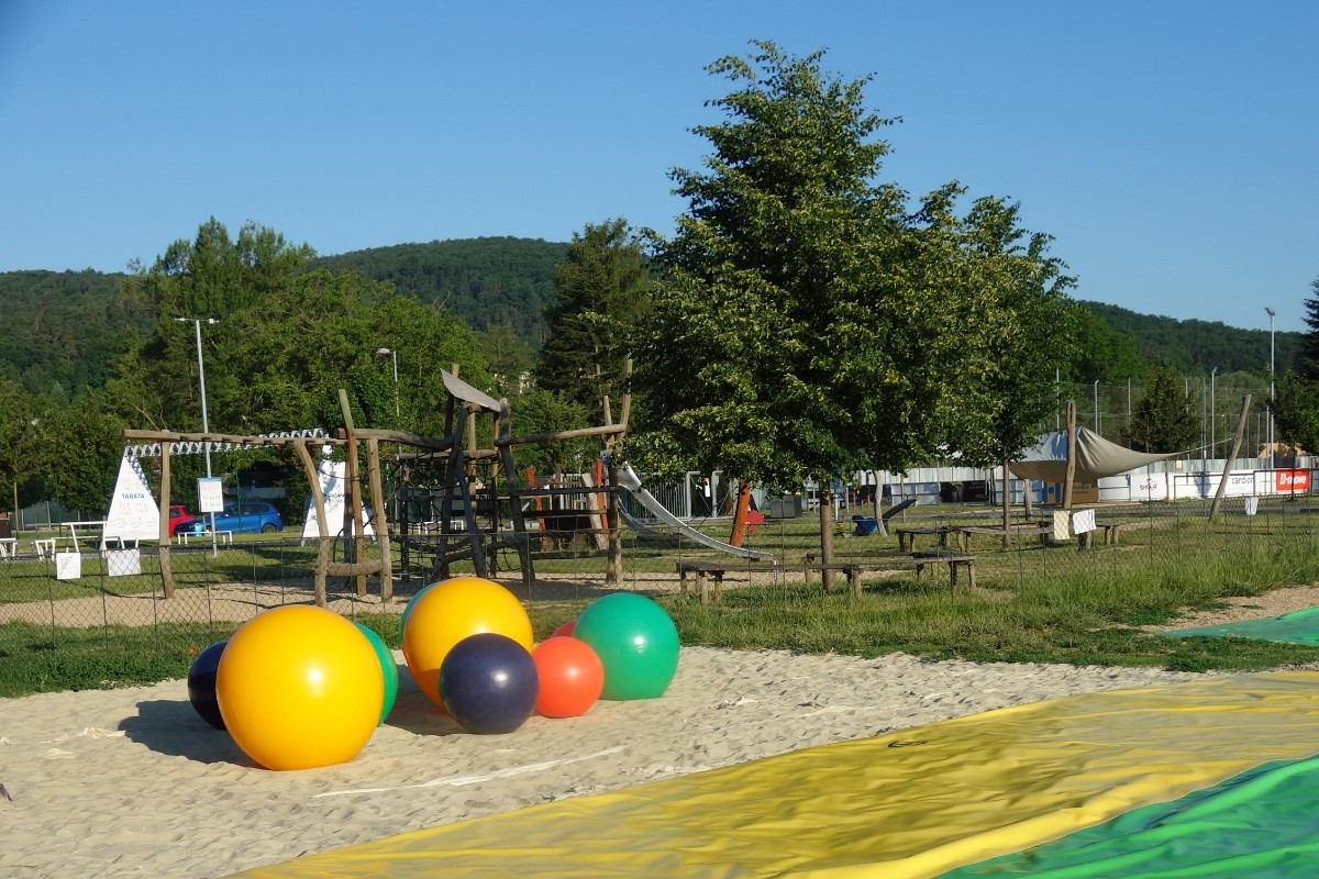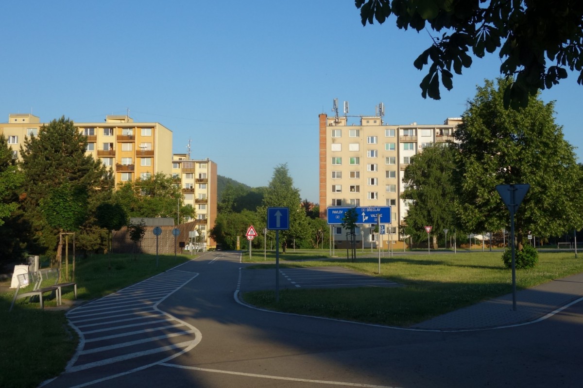 Procházíme kolem staveniště, které tu bude strašit a prášit celé prázdniny. Ale kanalizaci je potřeba vyměnit. Dále míjíme mateřskou školku, a to znamená, že už jsme skoro doma.