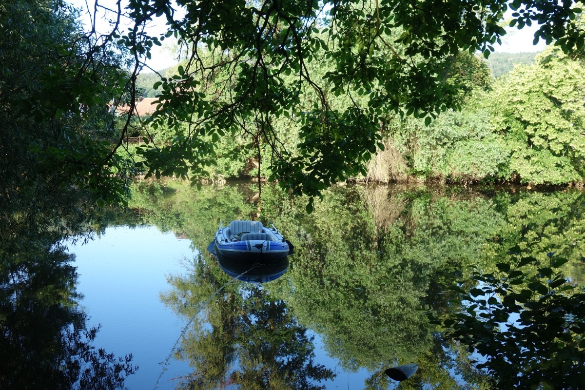 Pokračujeme dál,.......Na malé loučce před loděnicí kdosi spí. Myslela jsem, že bezdomovec, ale mýlila jsem se. Když jsme přišli blíž, všimla jsem si ještě opodál zaparkovaného pěkného člunu.