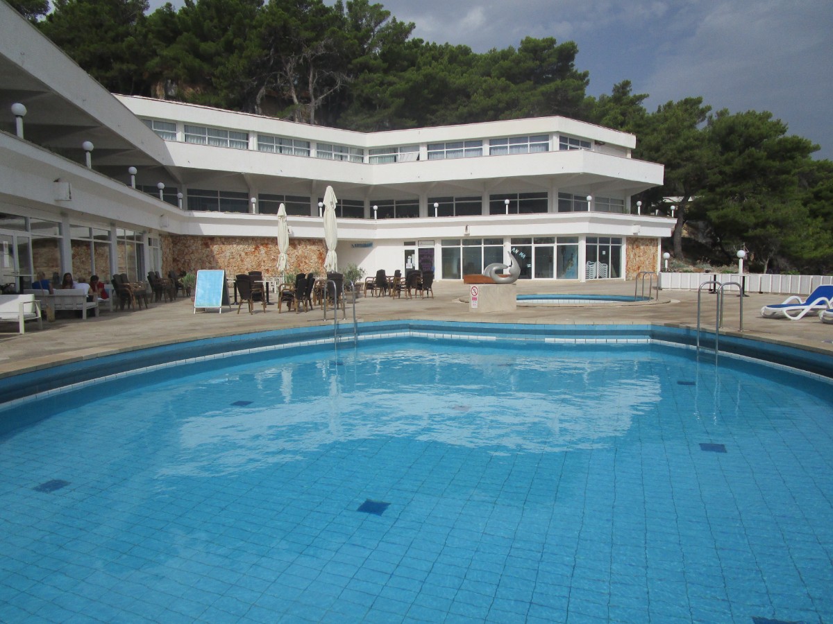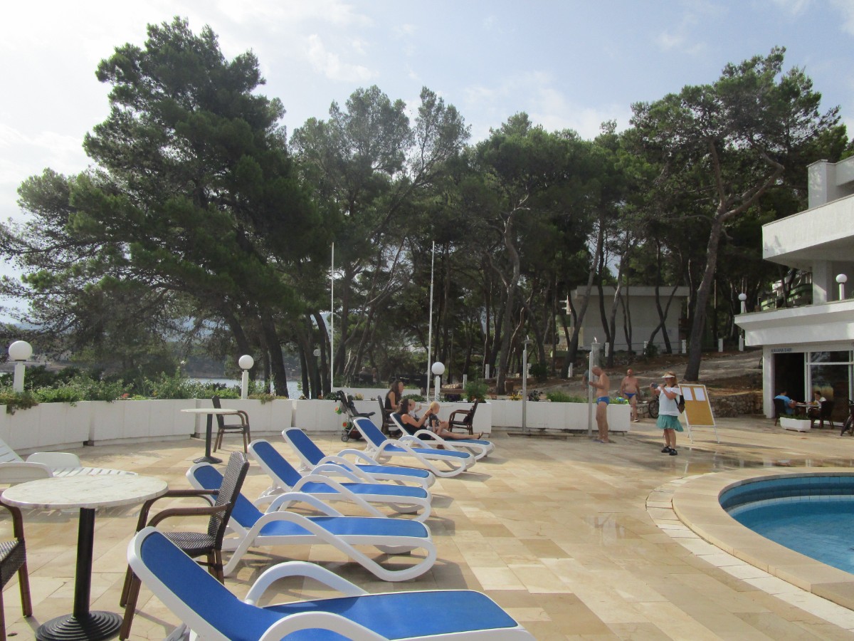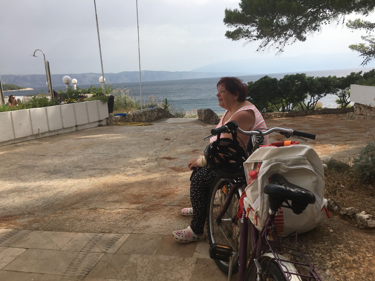 Dojely jsme k hotelu Fontána a tam mi Vanda přinese z recepce desinfekci a ošetřuje mne, protože ruka stále trochu krvácí.