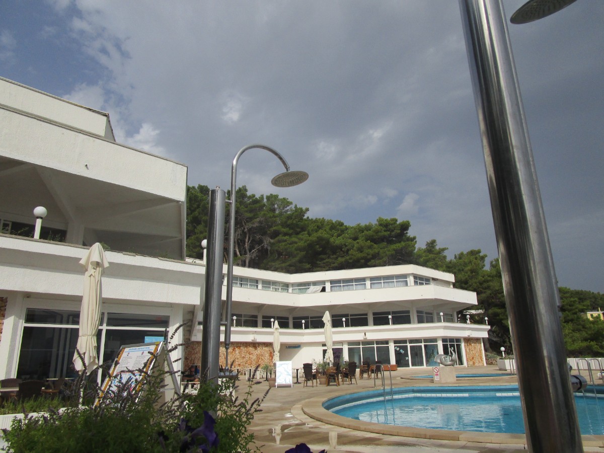 Raněné zvířátko má ovázanou pacičku. Ale už se zvedám a fotím pěkný hotel.