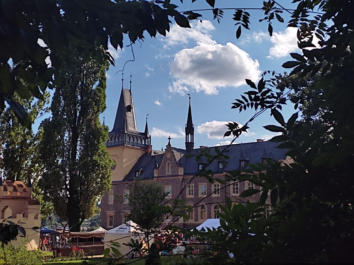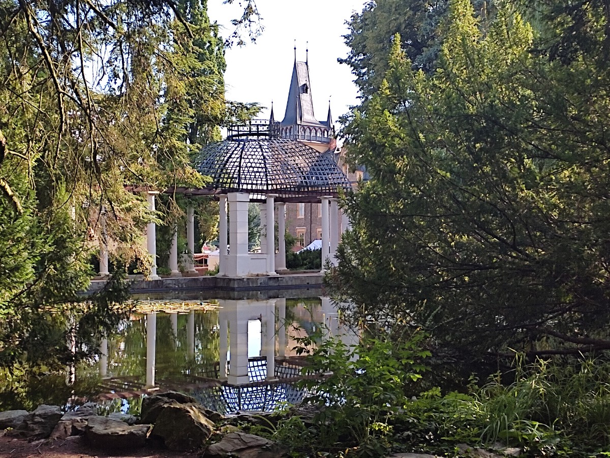 Poučná je i naučná stezka zámeckým parkem. Především Schebkové založili zámecký park a přestavěli zámek do dnešní podoby. Hezké posezení je u jezírka baronky Emmy, v kterém je zasazena bronzová Kapka štěstí (já ji neviděla :-)), u které se můžete osvěžit nebo vyslovit přání.