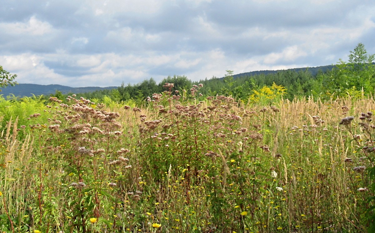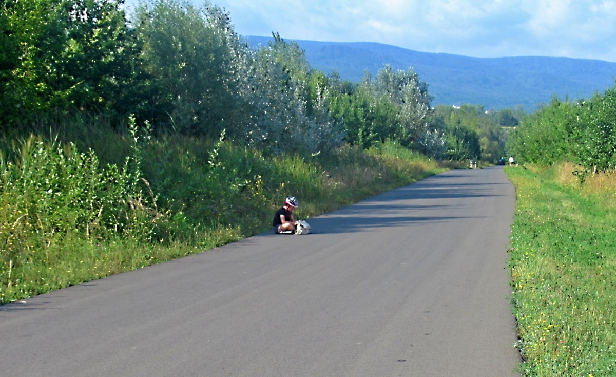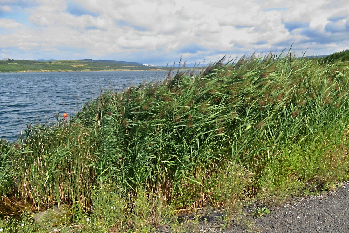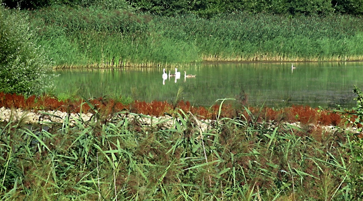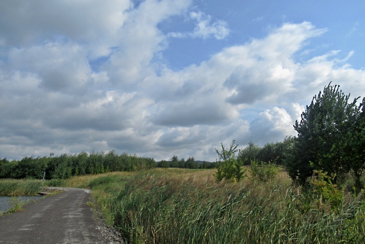 Tentokrát jsme to vzali přes obec Roudníky. Sešli jsme lesíkem na silnici a už jsme viděli naši oblíbenou Miladu. Příroda má tu možnost a potřebu se neustále proměňovat, takže na rozdíl od jarní procházky to nyní bylo všechno fakt zarostlé. Zřejmě tím, jak bylo pořád mokro a deštivo, všechny stráně kolem jezera jsou porostlé hustými stromy, tráva na loukách je do pasu a rákosí? Rákosí je všude, kam se podíváš, šli jsme po cestě směrem k Trmicím a až na malé výjimky jsme neviděli vodu, jen slyšeli.