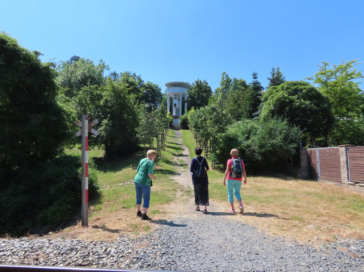 Nápad pozvat zájemce do „mého“ města se mi v hlavě vylíhl při prvním velkém a úspěšném "pokovidovém" setkání v Prokopském údolí, vyhlášeného redakcí i60. A bez meškání jsem ho také přednesla zúčastněným a posléze vyhlásila na webu. Připravila jsem program podle mého nejlepšího svědomí, netušila jsem však, že hlavní bod - prohlídku zámku – budeme muset vypustit. Záměr nám totiž zhatili filmaři, kteří zámek zrovna obsadili a měli samozřejmě přednost. Nám to nakonec vlastně ani nevadilo. 17. červen připadl zrovna na jeden z mála opravdově letně horkých dnů letošního léta. Pokusila jsem se vést naši skupinku tak, abychom se přímému slunci pokud možno vyhýbaly.