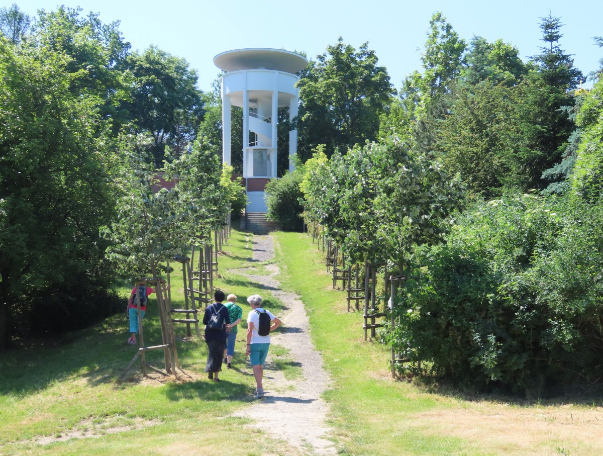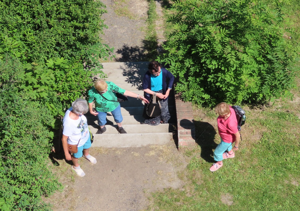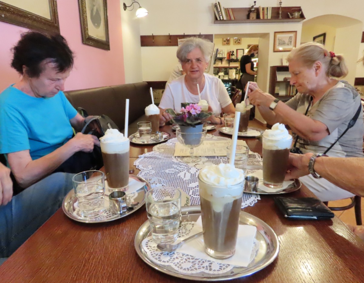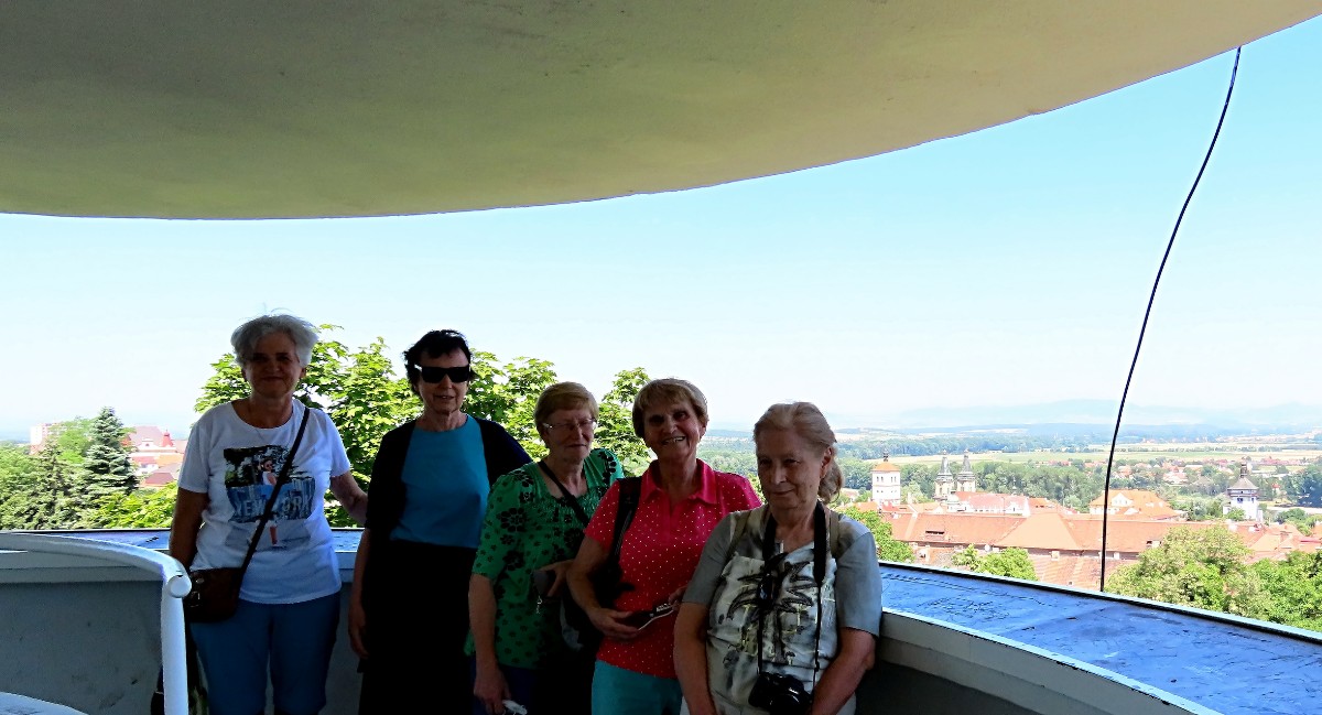 Na nádraží přivezly vlaky Jitku, Jarku, Marušku, Olinku a Helenu, bylo nás tedy šest. Prohlídku města jsme zahájily v našem novém a pěkném infocentru, kde si jednak děvčata odložila batohy a jednak jsme si prohlédly výstavu obrazů australského malíře Lukose Hey „New Visions – Roudnice nad Labem 2021“. Odtud jsme se vydaly na městskou hlásku. Tato bílá věž s vyhlídkovým ochozem je jediným pozůstatkem opevnění staré Roudnice. Obhlédly jsme město pěkně z výšky a pomalu se blížil čas oběda. Už se stalo zvykem, že všechny návštěvy vodím do Zámecké restaurace a tento zvyk nebyl porušen ani tentokrát. S plnými bříšky jsme pokračovaly k rozhledně. Ano, ve městě, přesněji řečeno malý kousíček nad ním, máme v parku rozhlednu. Ta se směle může řadit k raritám, protože s nadmořskou výškou 230 m se řadí k nejníže položeným rozhlednám u nás. Děvčata mohou potvrdit, že výhled z ní na město se zámkem a věžemi i České středohoří na obzoru stojí za trochu námahy. Pohled na druhou stranu k Řípu bohužel časem vzal úplně za své. Z rozhledny jsme se vrátily dolů do města a zaslouženě se usadily ve známé kavárně Dortletka.