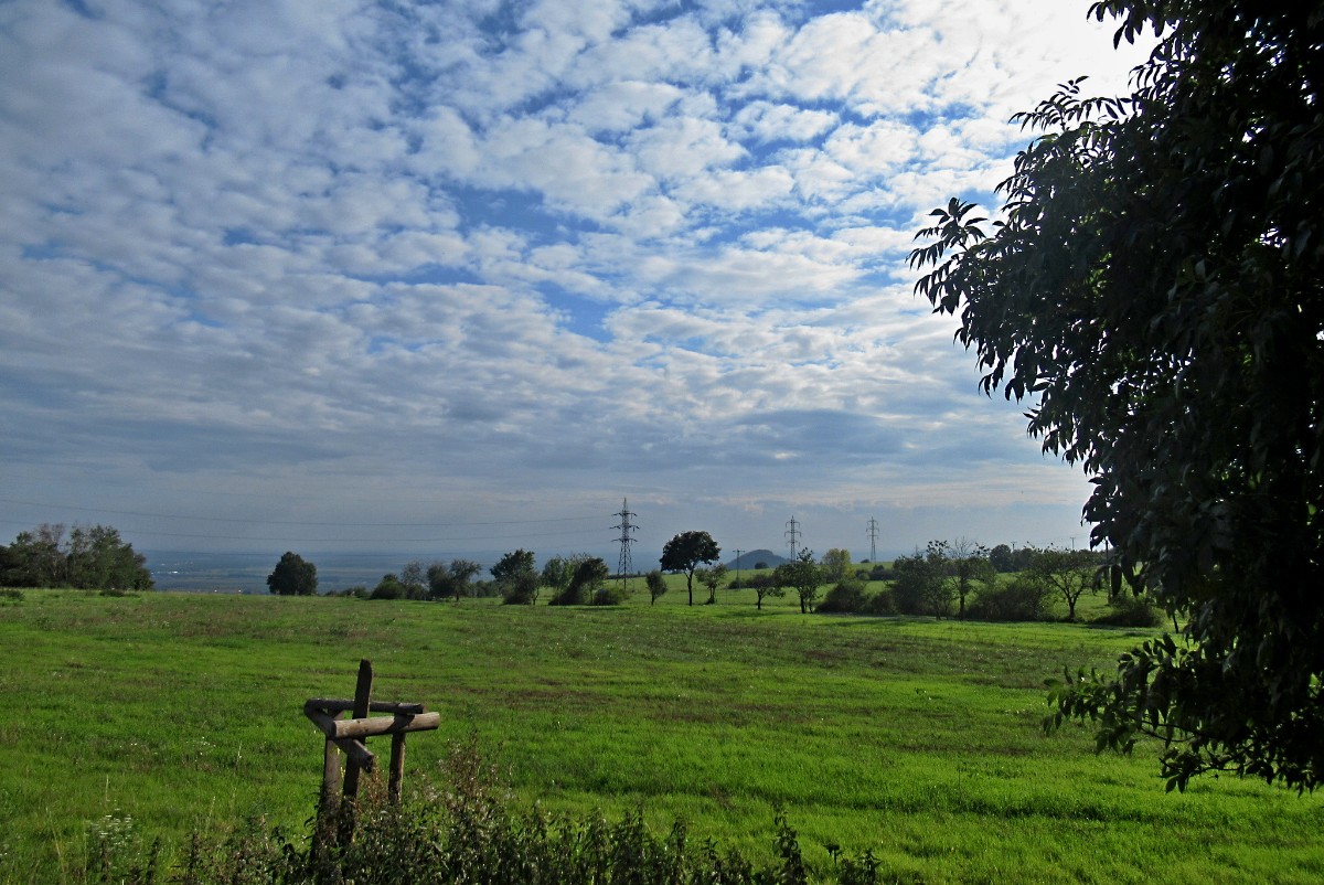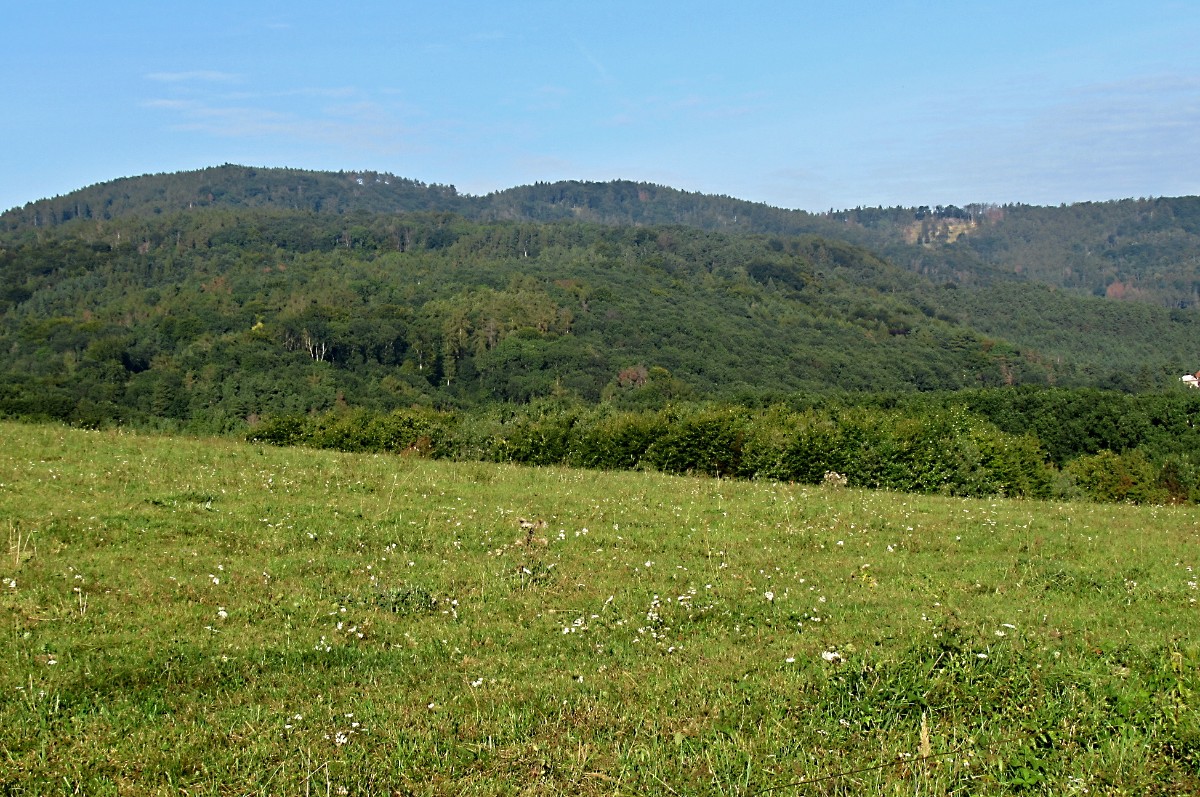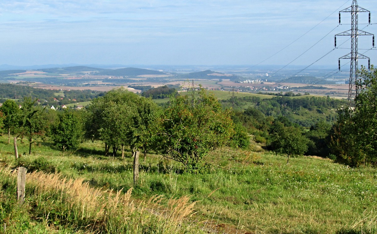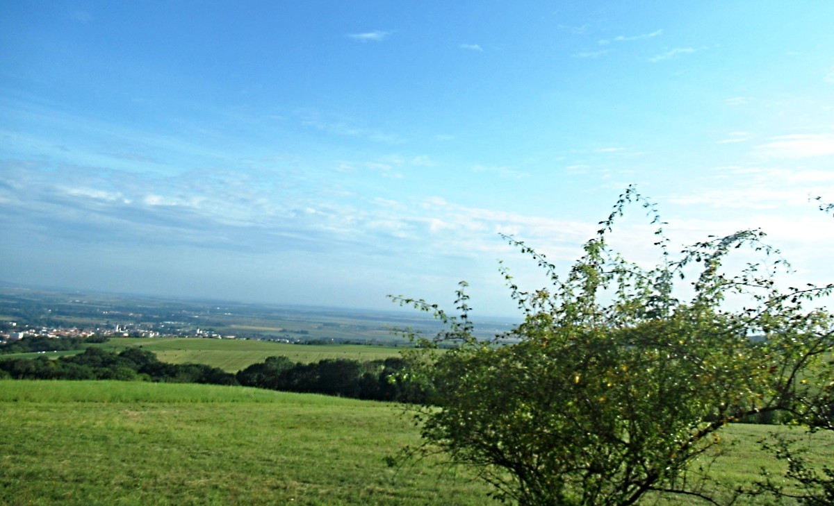 A tak jsme slušně poděkovali za seno, srdečně se rozloučili s Terezkou (shoda jmen s dcerou), naložili seno do kufru a odjeli kousek za obec. Auto jsme nechali pod kopcem Velké hradiště a vydali jsme se cestou k Malému hradišti. Bylo krásné odpoledne, bohužel obzor byl značně zamlžený, ale přesto jsem fotila jako o závod. To, že si uděláme ještě malý výšlap do přírody, jsem vymyslela cestou na Hlinnou. Přesto, že jsem měla na nohou pantofle, trochu jsem se podrápala o ostružiny a kopřivy, když jsme se snažili prolézt křovím na cestu, můžu vás ujistit, že to bylo opravdu krásné odpoledne.