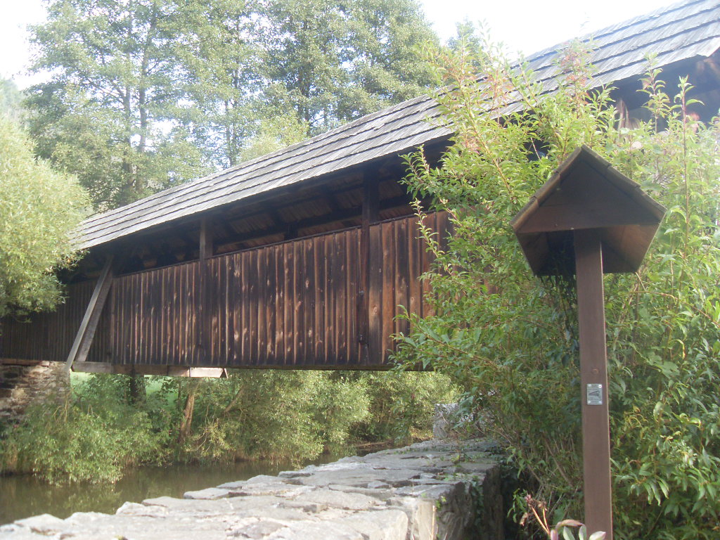 Naší první zastávkou byla krytá lávka přes řeku Svratku, která je nazývána Svářecká lávka. Sluníčko nám svítilo od rána, a tak výhled do okolní krajiny byl skutečně romantický.