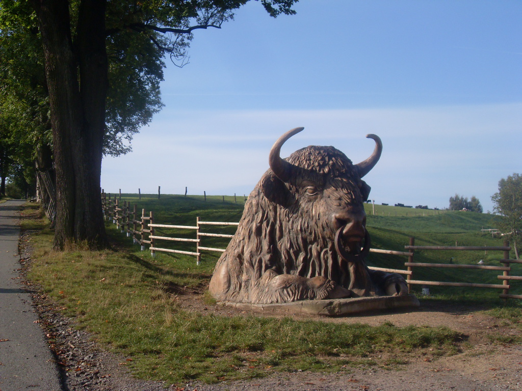 Pod Edenem je galerie dřevěných soch, lanový parčík, socha Zubra.