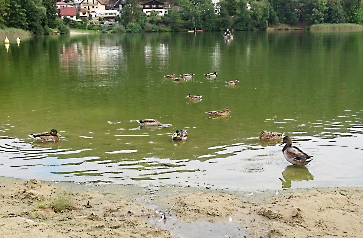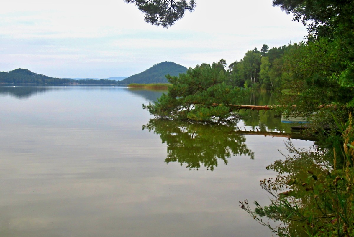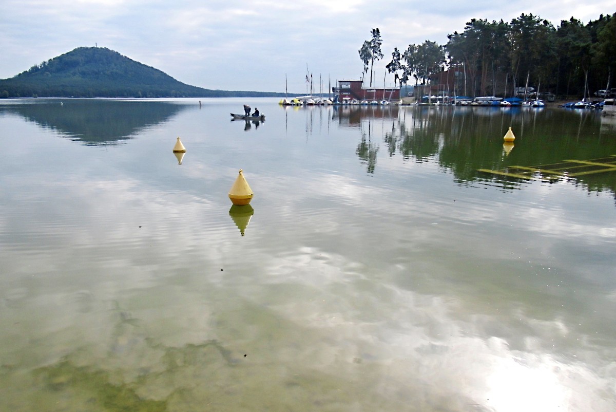 Už cestou jsem měla takové tušení, že tentokrát to bude houbaření na houby. Nejenom, že všude byla spousta lidí, ale už první kroky do lesa mě utvrdily v mém tušení. Žně z minulého týdne se nekonaly, les byl dokonale prázdný. Vzhledem k tomu, že počasí bylo na procházky jako stvořené, obešli jsme si okolí jezera, narazili jsme v lese na moc hezké skály, takže můj věrný přítel foťák měl o zábavu postaráno. Bylo mi trochu líto Iny, už podruhé nenašla ani jednu houbu. Sešli jsme se u aut a vzhledem k tomu, že se udělalo opravdu moc hezky, rozhodli jsme se se synem a vnučkou, že ve Splavech ještě zůstaneme a podíváme se k přístavu, případně se někde najíme.  Terka s Inou jely domů, my zaparkovali ve městě a pěšky se vydali k jezeru.