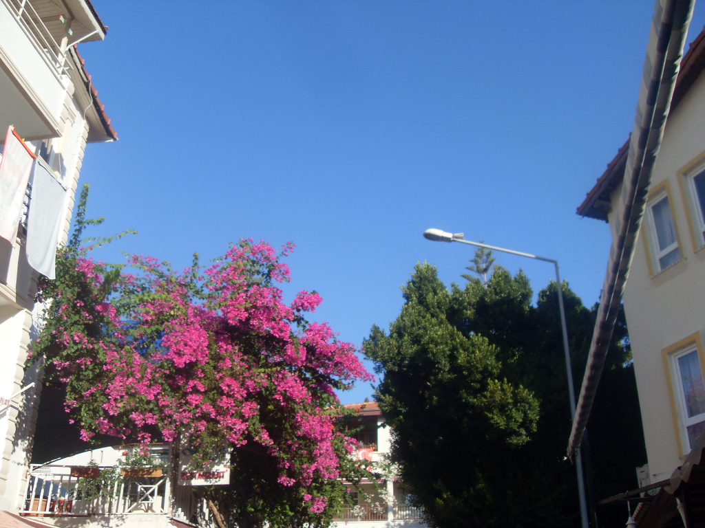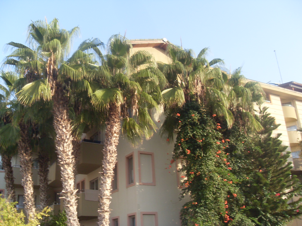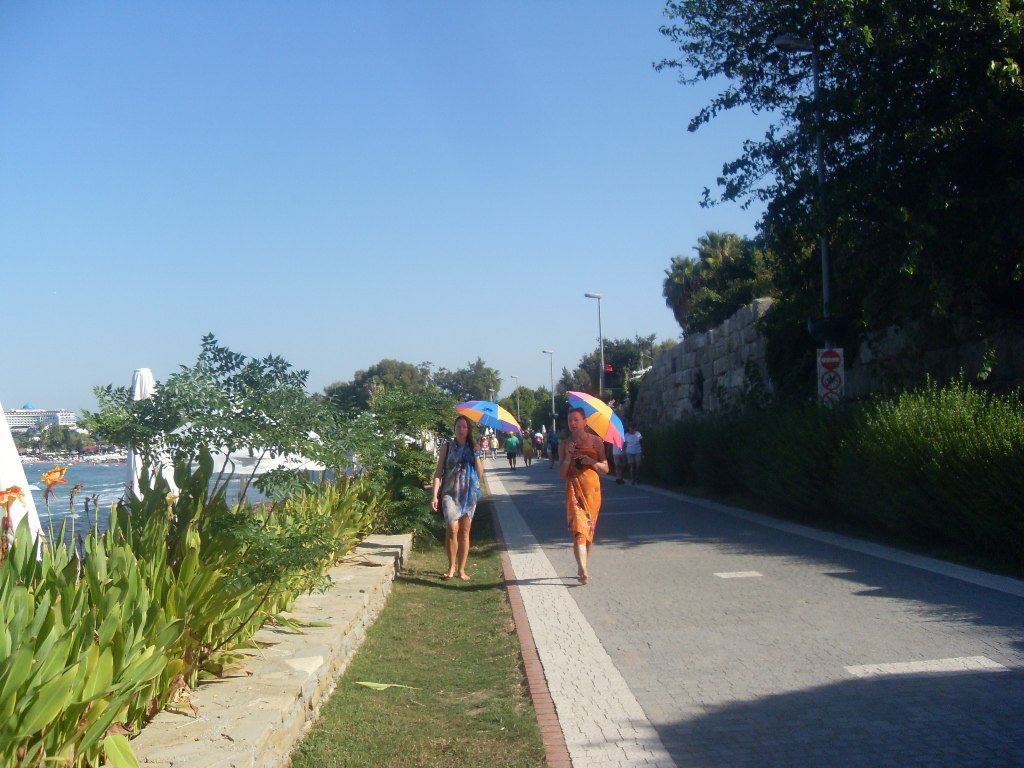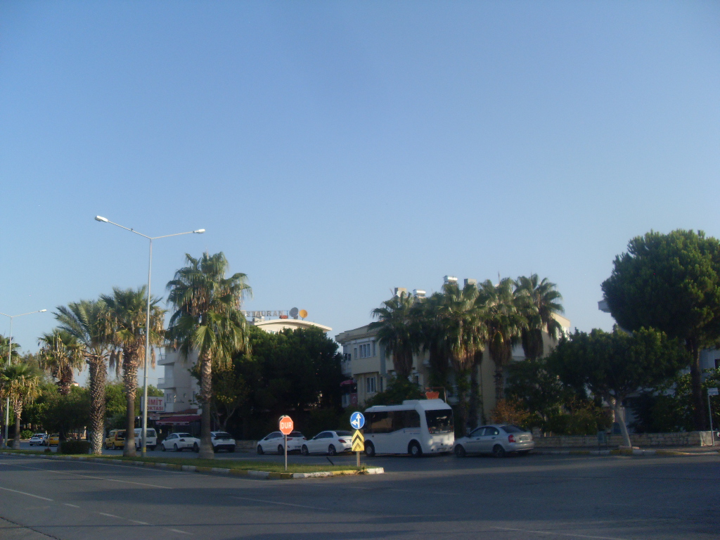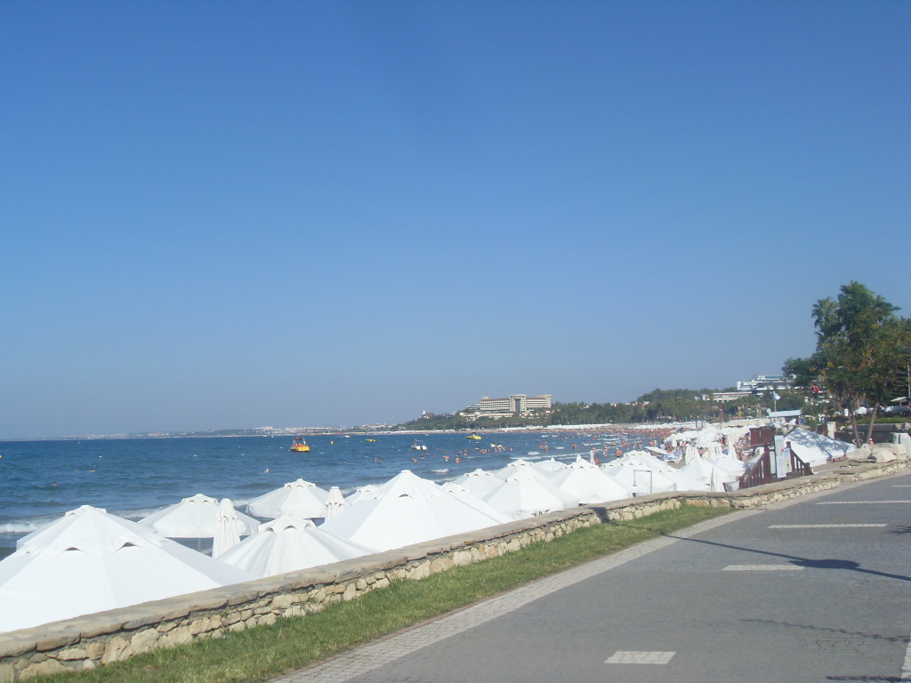 Druhá část města Side se sestává z desítek nových velkých hotelů podél pobřežní západní pláže, do centra města Side jsme měli 1 km. Název Side je odvozen od místního pradávného pojmenování pro granátové jablko - granátové marhaníky se vysazují do parků a mezi poli rostou jako plevel. V celém městečku je hodně zeleně s rozkvetlými a nádherně pestrobarevnými květy, tak jako kolem celého pobřeží.