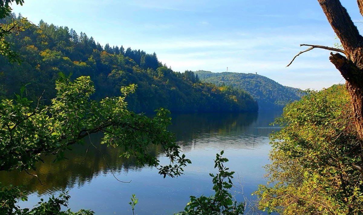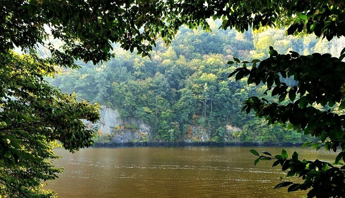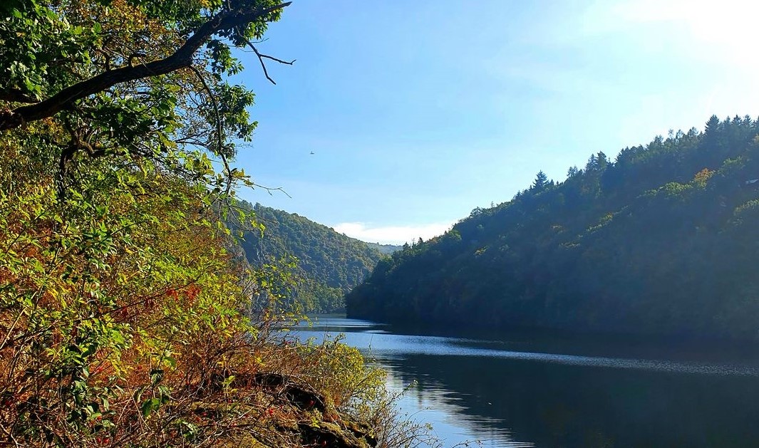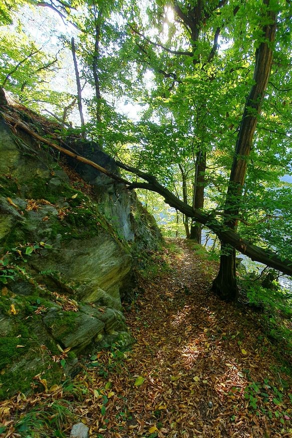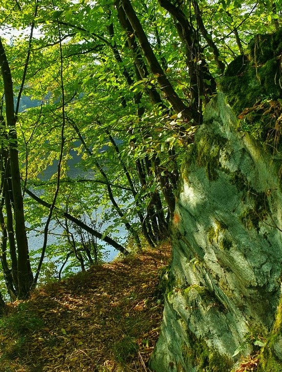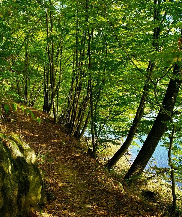 Rokle zřejmě není klasická rokle, jak jsem si ji přestavovala. Je ve svahu a ústí dolů k řece. Na ni už nám nezbývalo dost sil ani času, byli jsme rádi, že jsme došli k ohybu řeky, kde jsme se už museli prodírat křovím, přelézat kdeco a držet se větví, abychom nespadli. Navíc stezka byla čím dál užší a dle mapy měla brzy skončit, protože pak už se rozprostíralo království skal. Přes ty jsme tedy rozhodně nehodlali přelézat, takže tím náš průzkum stezky skončil a my se vydali opatrně zpět k přehradě.