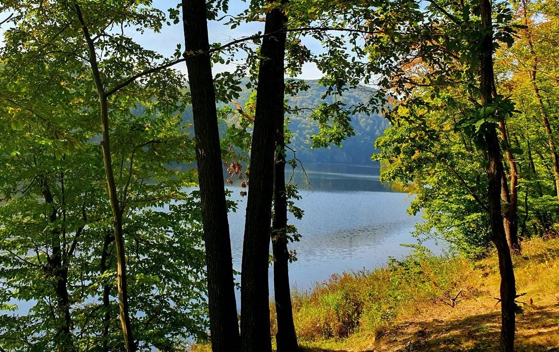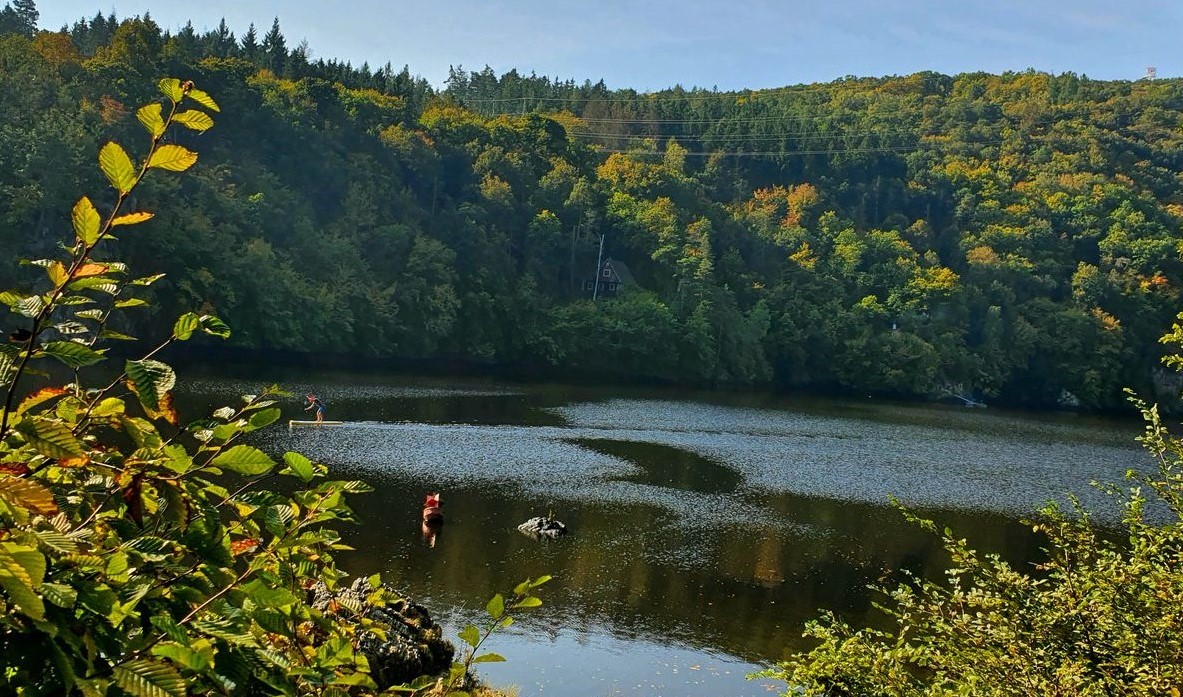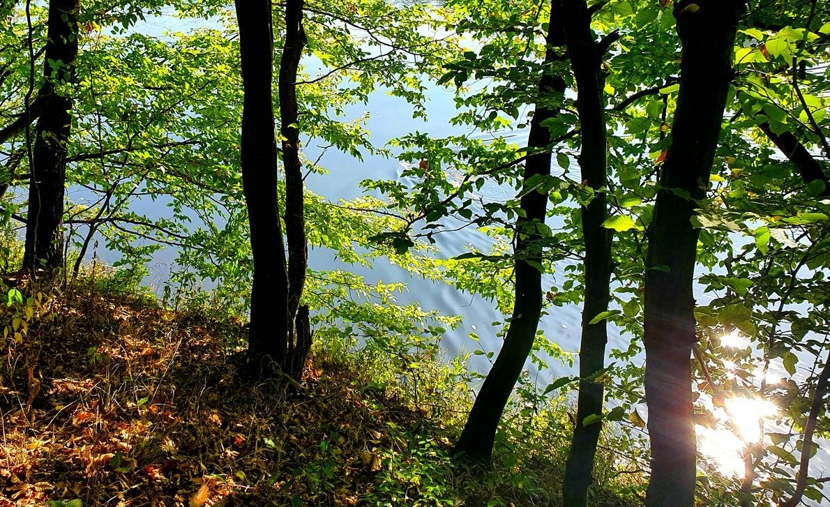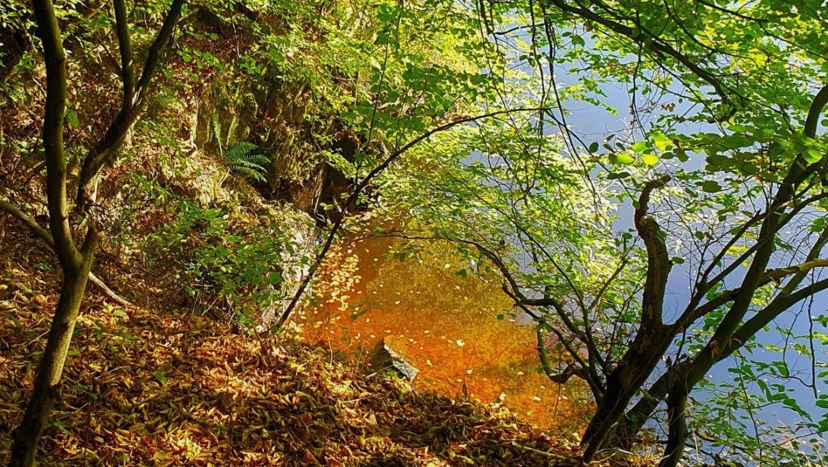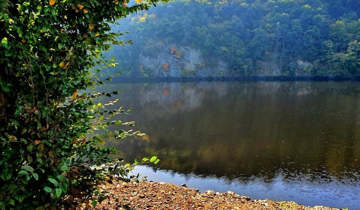 Rokle zřejmě není klasická rokle, jak jsem si ji přestavovala. Je ve svahu a ústí dolů k řece. Na ni už nám nezbývalo dost sil ani času, byli jsme rádi, že jsme došli k ohybu řeky, kde jsme se už museli prodírat křovím, přelézat kdeco a držet se větví, abychom nespadli. Navíc stezka byla čím dál užší a dle mapy měla brzy skončit, protože pak už se rozprostíralo království skal. Přes ty jsme tedy rozhodně nehodlali přelézat, takže tím náš průzkum stezky skončil a my se vydali opatrně zpět k přehradě.
