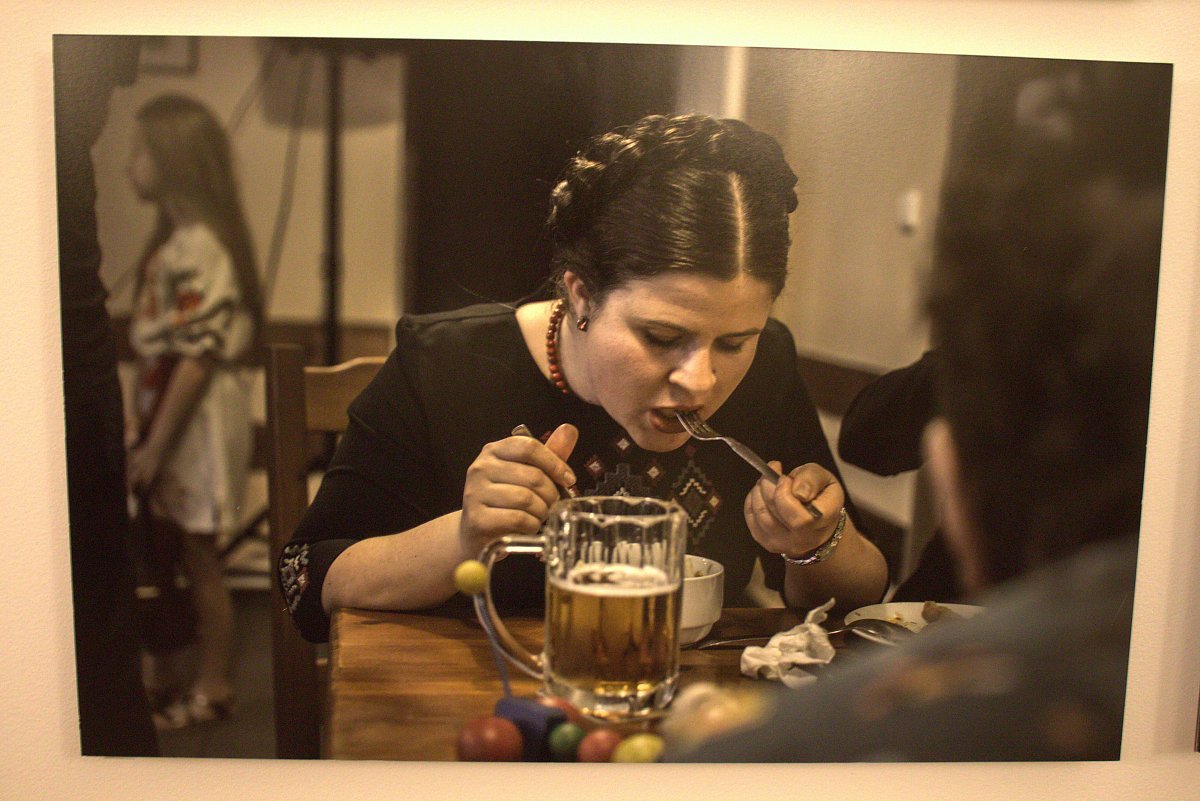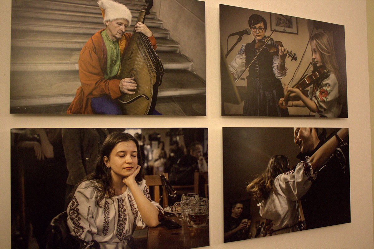 V další místnosti byly fotografie Ukrajinců, kteří tvoří druhou nejsilnější menšinu v naší zemi. Uplatňují se hlavně ve stavebnictví, ale na našem území už trvale žije nezanedbatelné množství intelektuálů, kteří pracují v našich nemocnicích, vědeckých ústavech aj.
