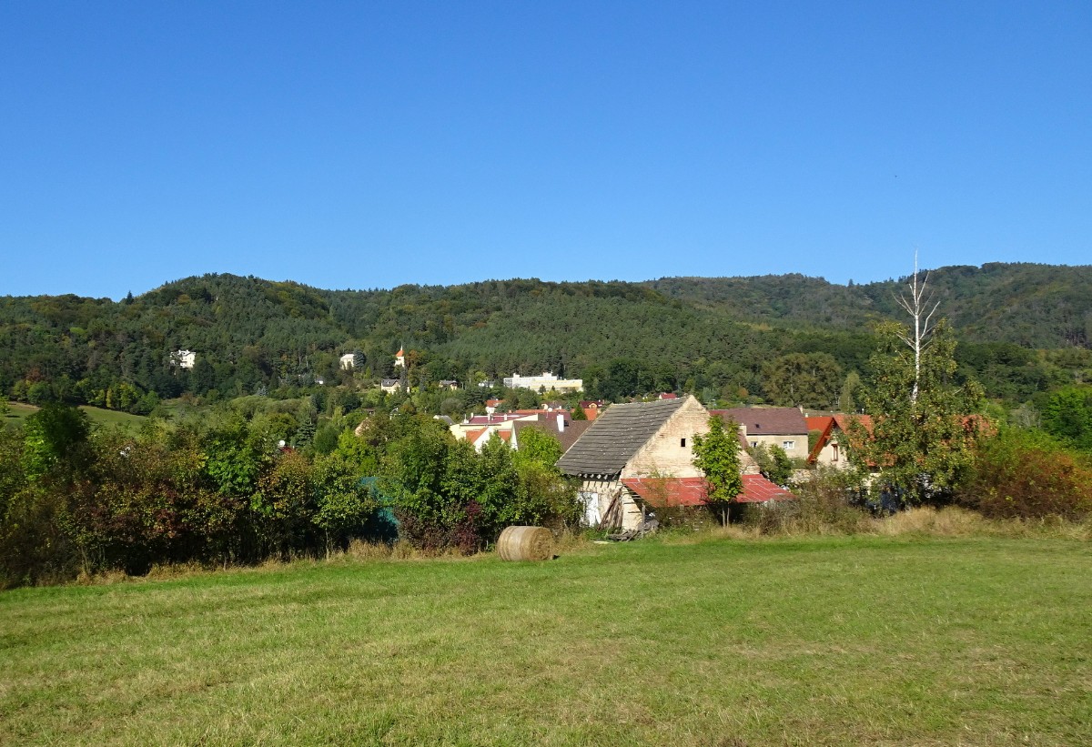Orchideje včetně vzácného střevíčníku pantoflíčku sem lákají množství "lovců beze zbraní" s foťáky. Podzimní variantu stráně prakticky neznám. A když už tam budu, udělám si menší výšlap ze Žitenic kousek po Žitenické stezce hradů přes Loretu a Skalici na Bílou stráň a dále přes Mostnou horu na autobus v Litoměřicích. Autobusové spojení je trochu zdlouhavé, a tak mě do Žitenic dovezlo naše autíčko, které posléze bylo propuštěno. Ze silnice od Litoměřic do Žitenic je krásně vidět hojně navštěvovaný skalní útvar, zvaný pro svůj charakteristický tvar prostě Kočka. Obloukem ji nakonec uvidím ze shora z Bílé stráně, jak shlíží na Žitenice.