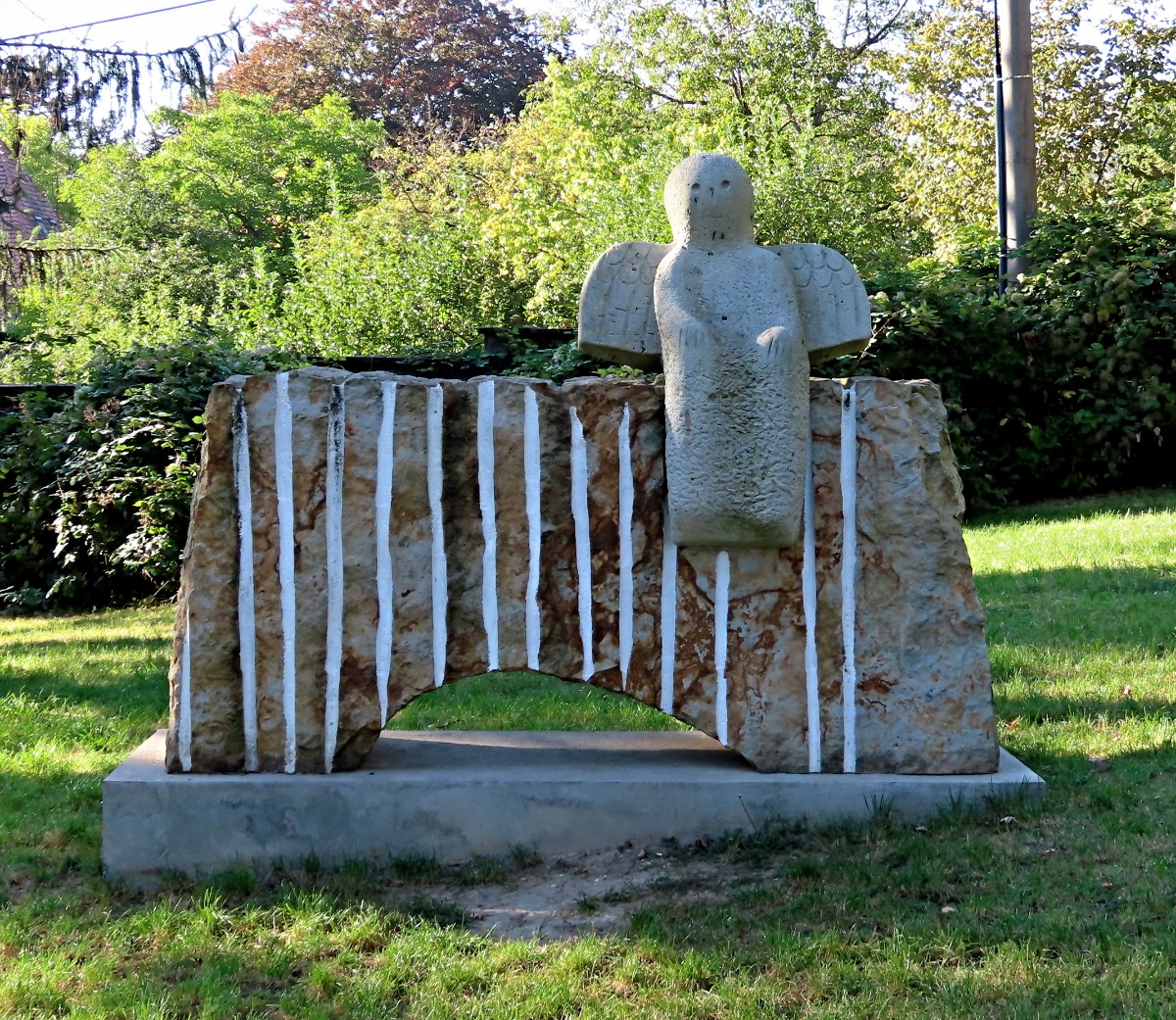 Přímo proti mým očím se zelená Velké Hradiště i skromnější Malé Hradiště, zvané též Kamýk. Velké Hradiště jsem si už odškrtla (Holý vrch, Hradiště a Bílá stráň), malé mě ještě čeká. Přestože je nádherné počasí a slunce hřeje skoro letně, nepotkala jsem ani človíčka. Bílá stráň je opuštěná a je tu klid, jen břízy šumí v lehkém vánku. Až na konci Bílé stráně se proti mně objevil letně upravený turista. To už je chvíle, kdy se blížím k Mostné hoře a v pohledu vlevo mám místo, odkud jsem vyšla. Kočku vidím zezadu a za ní žitenický kostel. Ani Mostná hora žádný ruch nezažívá, prošla jsem lesem k zavřené rozhledně na vrcholu a druhou stranou sešla k bronzové soše Karla Hynka Máchy. Že vám připomíná sochu Josefa Václava Myslbeka z pražského Petřína? Není divu. Vždyť socha měla původně stát v Litoměřicích, avšak zůstala v Praze. Teprve po stu letech se Litoměřice dočkaly kopie, která se od pražské sochy liší v tom, že nemá na podstavci věnec. Pozdravila jsem se s romantikem a mezi moderními betonovými díly seběhla dolů do Litoměřic na autobus. Za sebou jsem měla nádherný sluníčkový den a v nohou asi 10 km.