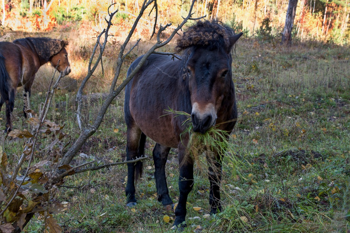 Divocí koně žijí Na Plachtě již několik let a jsou jednoznačně přinosem pro tuto lokalitu. Po čase byli přestěhováni z původní aklimatizační pastviny u rybnika Jáma (kterou stihli pěkně “vyžrat”) na hlavní pastvinu v centrální části lokality. Koně nepobíhají úplně volně, jsou udržováni v tomto prostoru v rámci rozsáhlých elektrických ohradníků. Původní obavy z kontaktu divokých koní s lidmi se nenaplnily. Návštěvníci se chovají vzorně a koně (až na vzácné výjimky) nepřikrmují. Koně si zase zvykli na přítomnost pejsků a lidí. Ke konfliktům nedochází. Občas samozřejmě nastávají i krušnější chvíle. V roce 2020 narušilo poklidný život nejen divokých koní neobvyklé sucho. Zdroje vody postupně vyschaly, a tak byl dokonce nutný dovoz vody a částečně i potravy jinak soběstačným koním. Nakonec musela být část stáda z této oblasti odstěhována.
