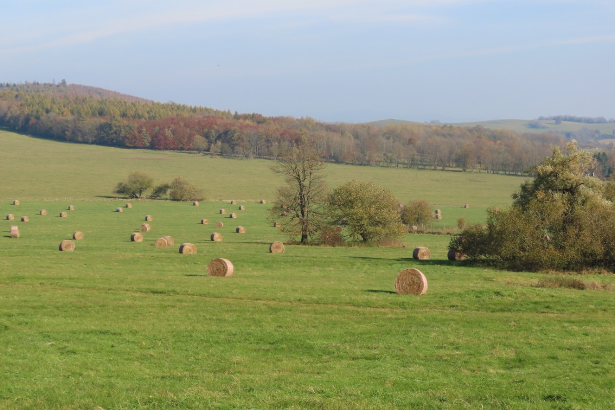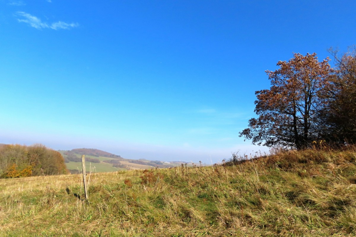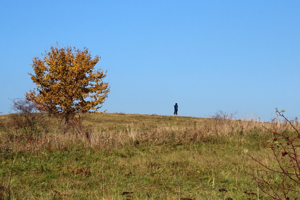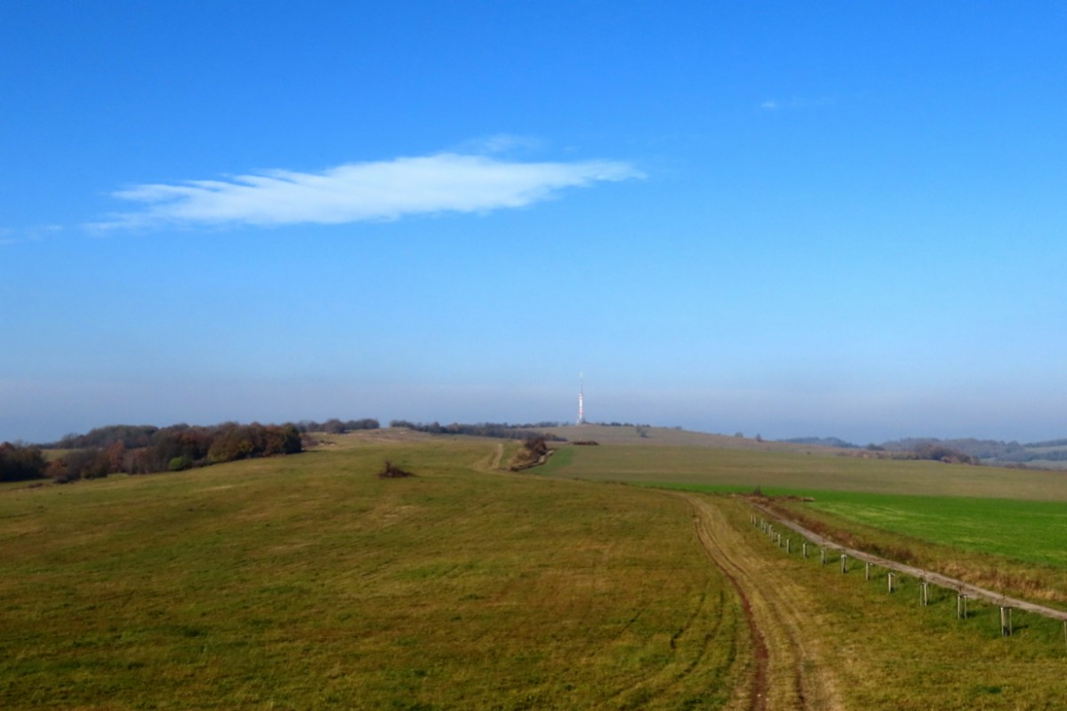 Za nezvykle na toto roční období krásného dne jsme se s kamarádkou na Bukovou horu vydaly. Na start výletu nás dovezl autobus. Ačkoliv slunko svítilo i příjemně hřálo, ve vzduchu se tetelil opar a výhledy na České středohoří se moc nekonaly. Nám to ale vůbec nevadilo a vykračovaly jsme si spokojeně podzimně zbarvenou přírodou. Zdálo se, že vysílač máme na dosah. Pokud byste se rozhodli pro tuto vycházku, vězte, že od rozhledny k vysílači to je 6 km. Cestu snadno zvládnou i děti, vede po hřebeni bez velkého převýšení.