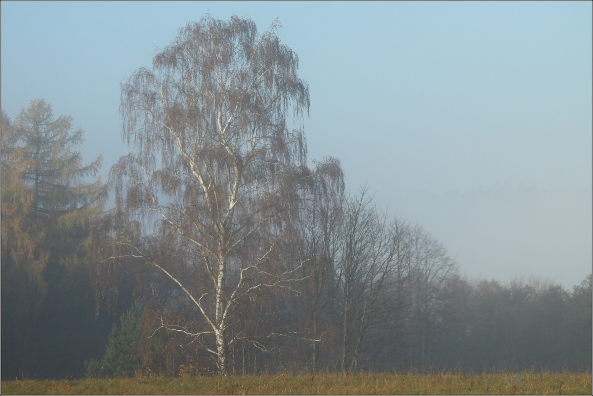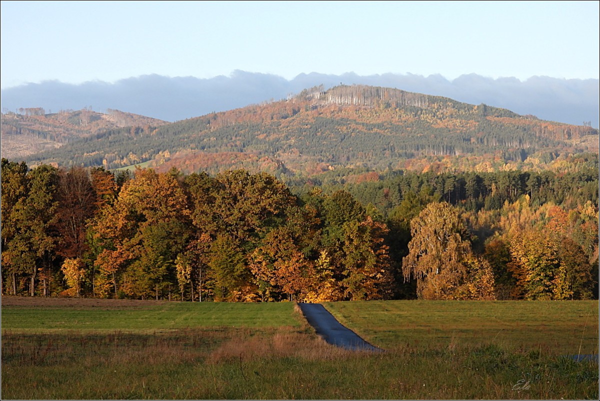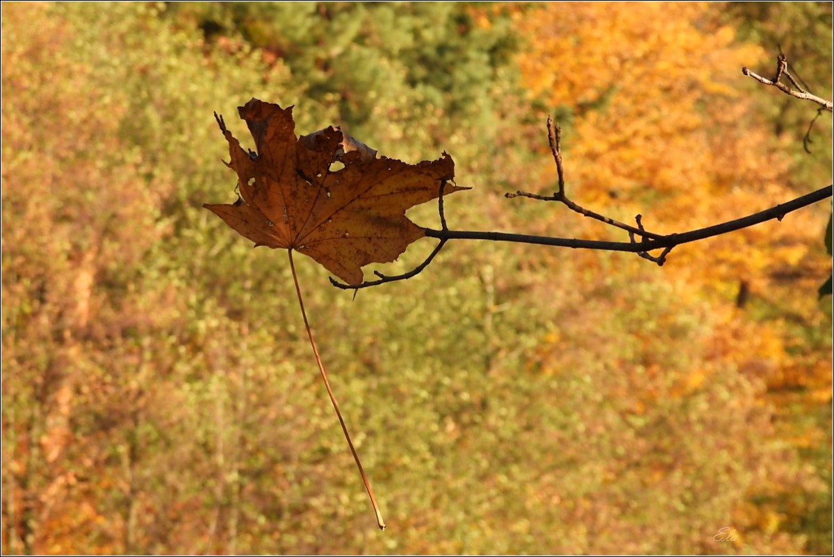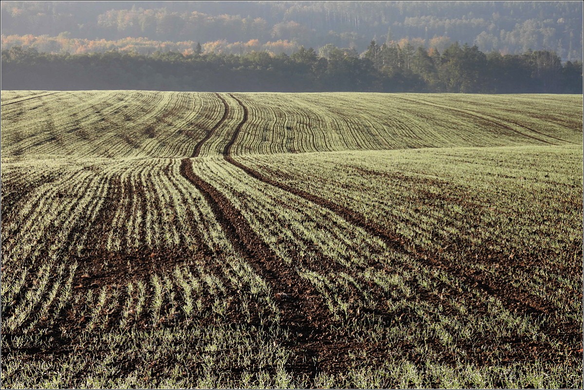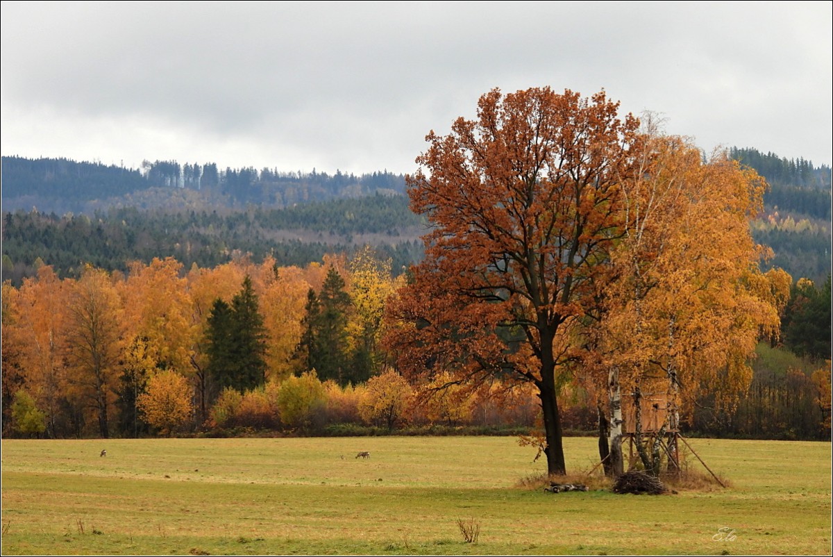 K podzimu však také patří barvy. Je to pestrá paleta červené, oranžové, okrové a třeba žluté. Jsou to teplé tóny, které se však s pokračujícím podzimním časem ztrácejí, zanikají až se na konec příroda zahalí do šedé a hnědé, barvy země po které šlapeme, jen místy pro zpestření probleskne tyrkysová, k nebi se vzpínají obnažené ruce stromů, keře se chvějí v podzimním větru bičované plískanicí.