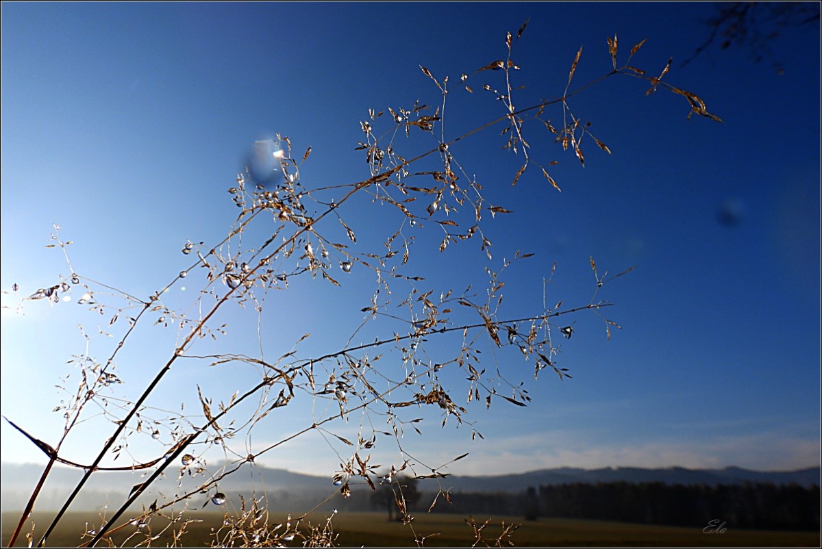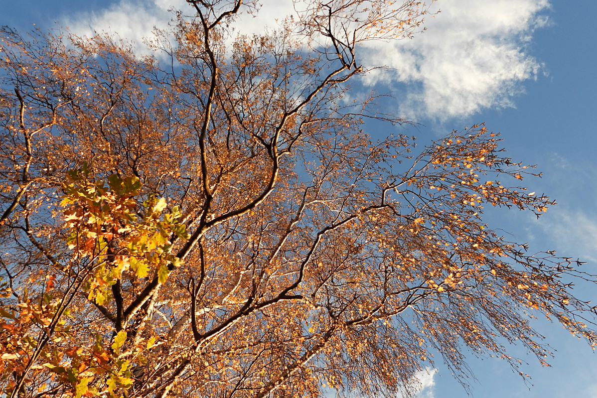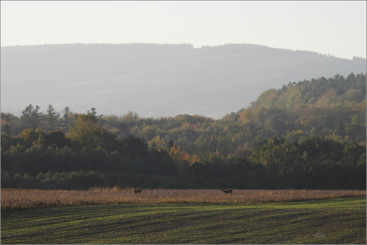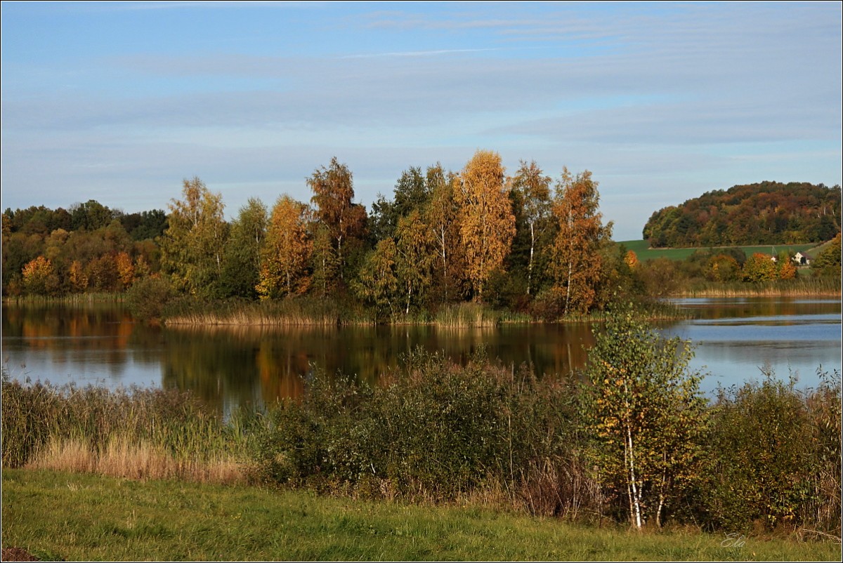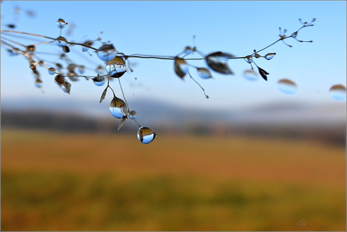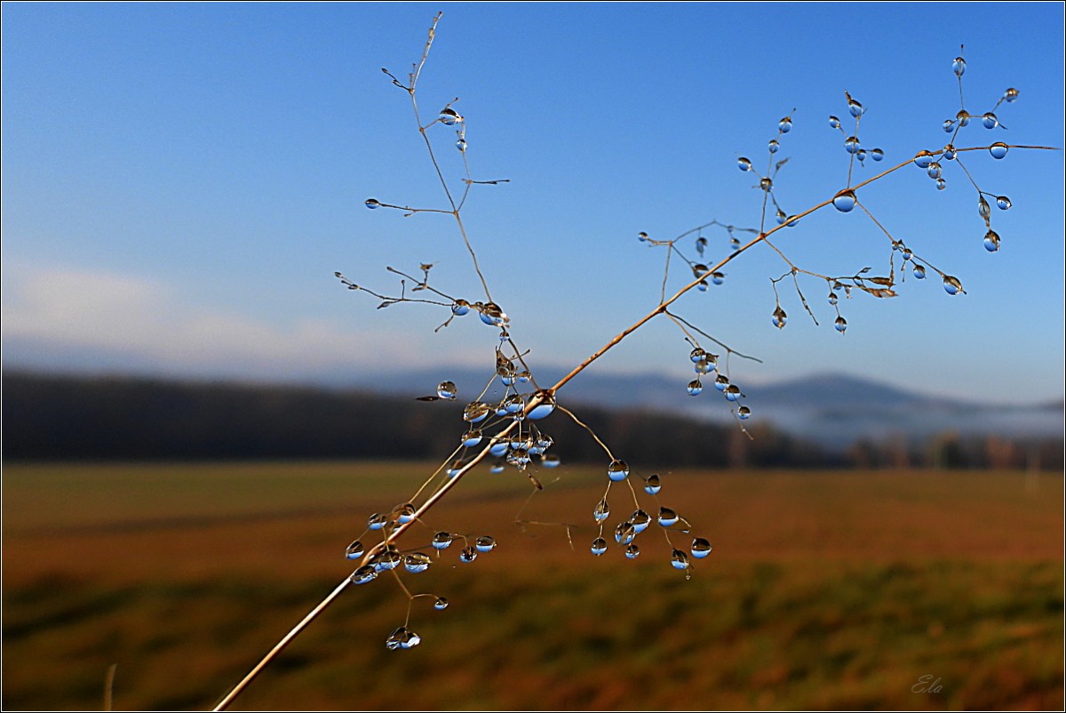 K podzimu však také patří barvy. Je to pestrá paleta červené, oranžové, okrové a třeba žluté. Jsou to teplé tóny, které se však s pokračujícím podzimním časem ztrácejí, zanikají až se na konec příroda zahalí do šedé a hnědé, barvy země po které šlapeme, jen místy pro zpestření probleskne tyrkysová, k nebi se vzpínají obnažené ruce stromů, keře se chvějí v podzimním větru bičované plískanicí.