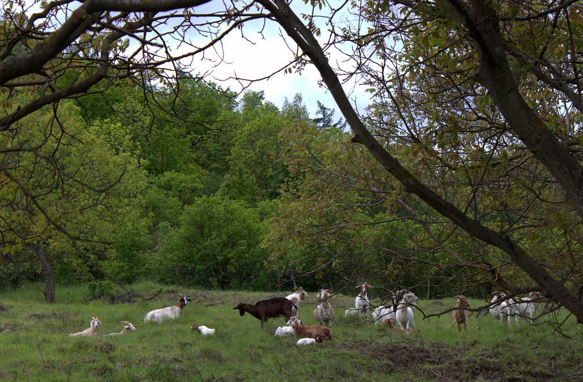 Byl ale nejvyšší čas vydat se na sestup a na další cestu po červené do cíle našeho putování. Při sestupování jsme narazili na velké stádo koz, které odpočívalo uprostřed zeleného háje. Po úbočí kopce a okolí se táhly rozsáhlé ovocné sady mladých třešní a meruněk. Pokračovali jsme po travnaté cyklostezce přes liduprázdou vesnici Sedlec. Jediný, kdo nás pozdravil, byl velký pes za plotem jednoho z domů. I náves s kapličkou byla úplně prázdná. Za vesnicí jsme odbočili do pole a minuli jsme krásně opravený, jak jinak než opuštěný, mlýn. K mlýnu vedlo stromořadí a na jeho konci jsme udělali zásadní chybu. Místo asfaltové okresky, po které vedla červená a my ji přehlédli, jsme dali přednost travnaté cestě uprostřed polí. Po čtvrť hodině jsme narazili na vlakovou kolej místní Švestkové dráhy. Měli jsme dvě možnosti: buď se vydat proti směru vláčku do Třebenic, kde jsme měli původně nastoupit, nebo po směru jízdy do Lovosic. Zvolili jsme z časových důvodů variantu č. dvě. Po půlhodinovém strastiplném pochodu přes řepková pole, křoviny a po kameni okolo trati jsme dorazili do vlakové stanice Čížkovice. Za pět minut přijel náš spoj a po několika přestupech jsme unavení, ale šťastní, opět uviděli své blízké, kteří byli rádi, že jsme se jim ve zdraví vrátili.