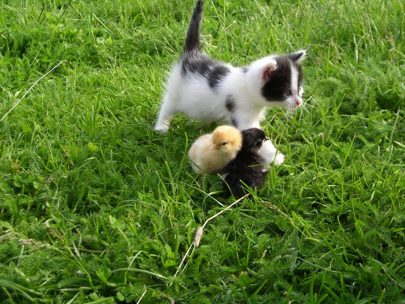 Vždycky, když se svojí bábinkou do statku přišel, oběhl každý koutek, přivítal se se zvířátky a pak jen přihlížel, co se děje. Jednou, hned takhle po ránu, se ale při svém šmejdění zasekl pod vikýřem na střeše a ne a ne pokračovat. Když nepřiběhl ani na zavolání, bylo to už divné. "Co to tam Bertíku máš?" podivovala se bábinka. Během chvilky jí to bylo jasné, ve vikýři sedělo malé strakaté klubíčko a naříkalo na celé kolo. Koťátko, mrňousek tak akorát do ruky. Proboha, kde jsi se tam vzal, drobečku, kde máš mámu? honily se jí myšlenky hlavou. Bertík poskakoval, štěkal a dral se na přistavený žebřík, jako by bábinku pobízel, aby něco udělala.