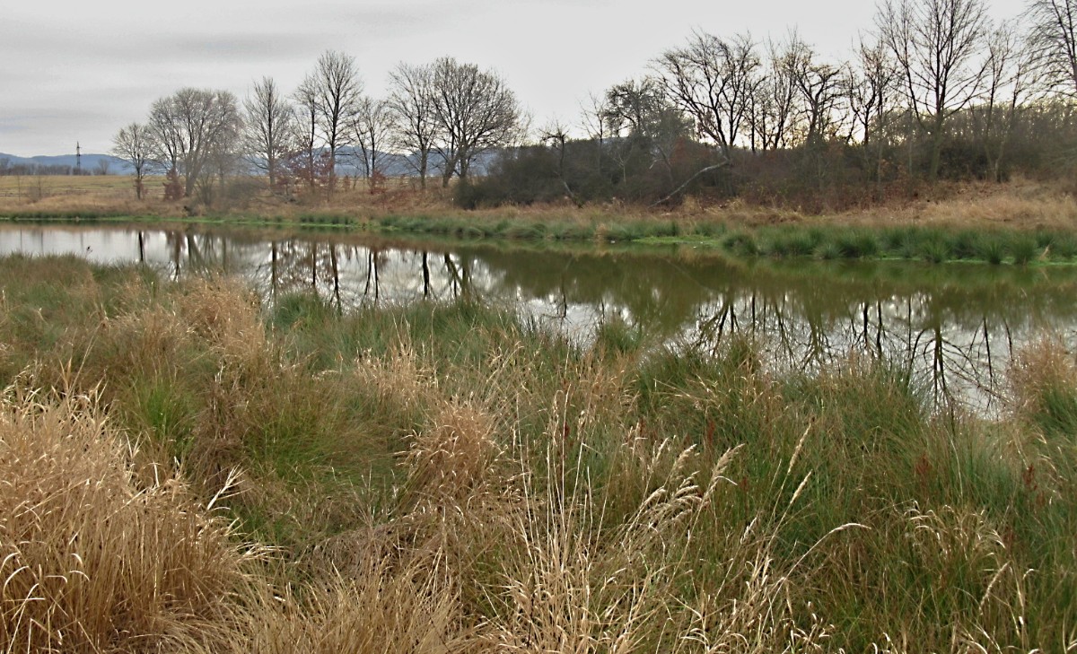 Samozřejmě, že foťák jsem měla v kapse a nic nebránilo tomu, abych se s ním rozběhla, no rozběhla, rychlejším krokem pobíhala po loukách. Bylo sice trochu zamlženo, ale to nevadilo, ke koukání toho bylo docela dost. Došli jsme až k rybníku, ten musím vyfotit vždycky, protože má pokaždé jinou podobu. Dokonce se tam objevili i rybáři, i když si myslím, že je ve vodě všechno, jenom ne ryby. Čas rychle ubíhal a pomalu se už začínalo smrákat, tak jsme se  vydali zpátky k autu. Cestou jsem někde v zápalu focení potratila své sluneční brýle. Trochu mě to mrzelo, nerada ztrácím věci, které jsem si oblíbila, ale na jaře si koupím ty samé, vím, kde je mají.