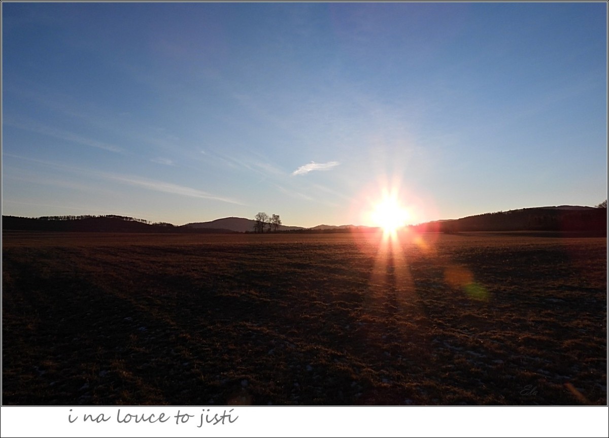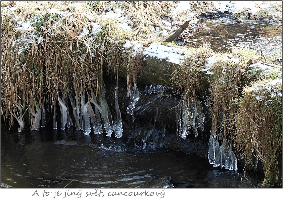 Ráno, raníčko babka vstala pejska si na vodítko uvázala. Do kopce tahá ztuhlé údy, na louce touží nalézt foto múzy. Slunce zlaté jiskřivě se na ni směje, vítr ji zimní píseň pěje.