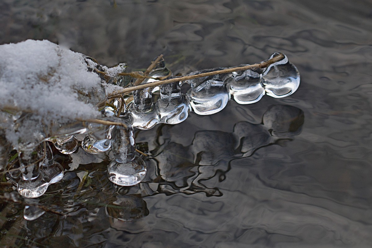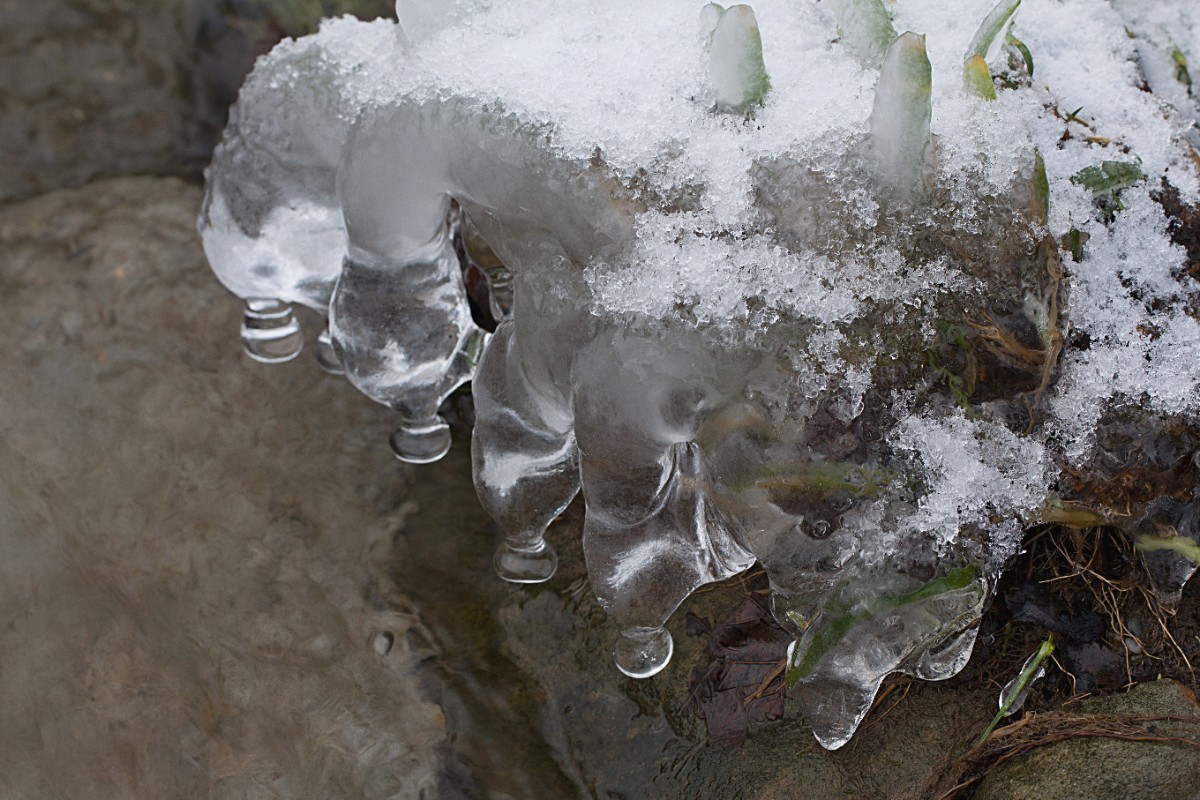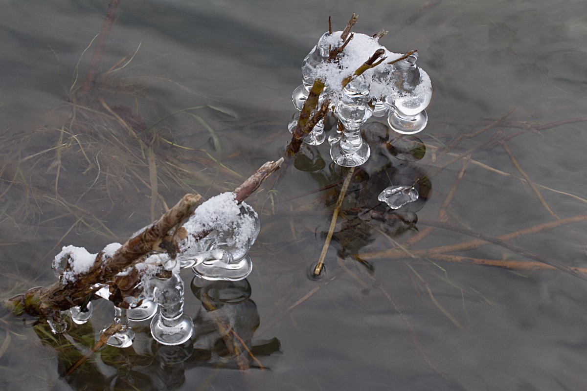 Ladovská zima se zatím letos nekoná. Snad se dočkáme. Zimu u nás připomínají pouze ledové výtvory na břehu řeky. Žasnu, co dokáže vykouzlit mráz.