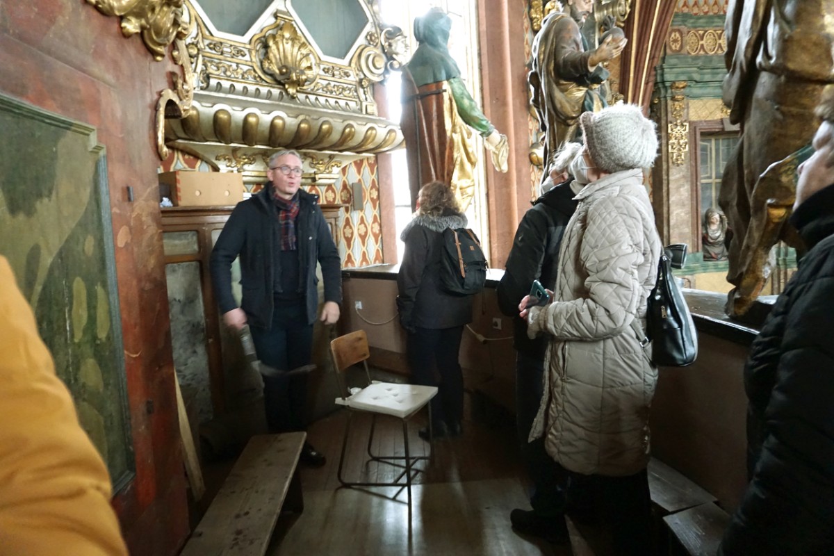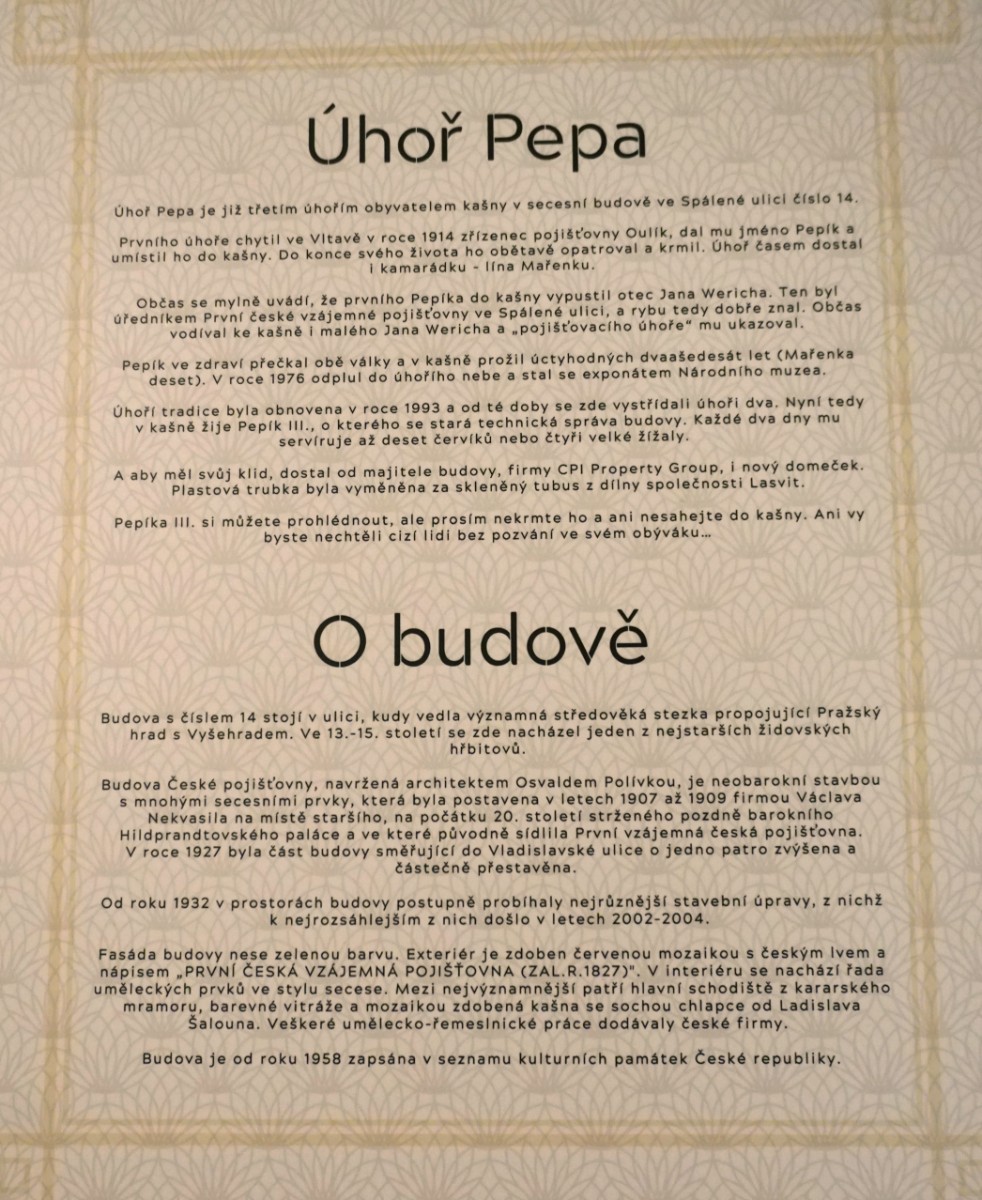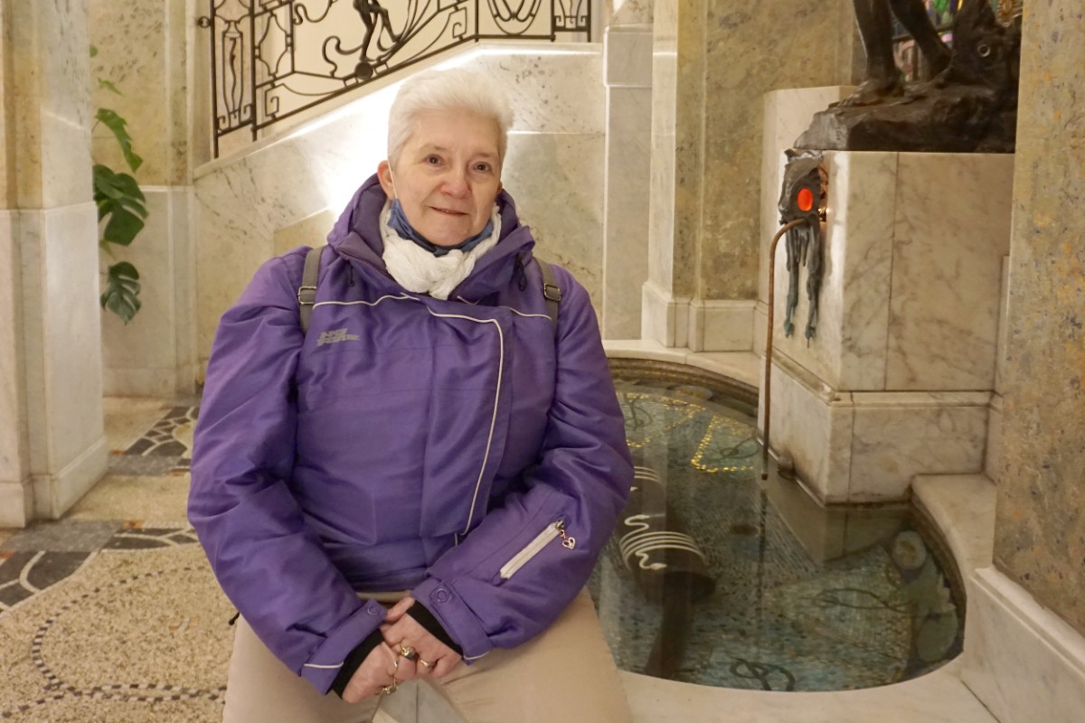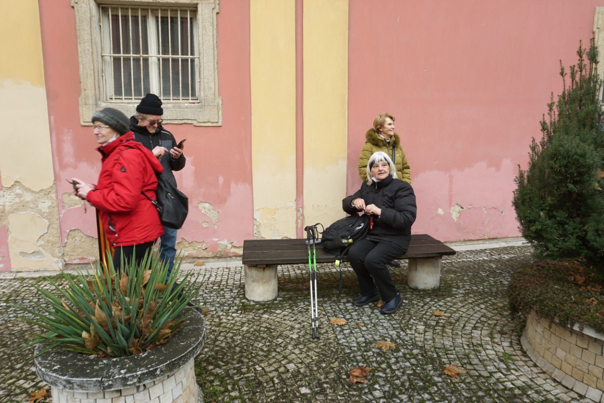 Setkání bylo v České pojišťovně u kašny s úhořem Pepou, o kterém jsem si nejdřív myslela, že to je nějaká maketa, než jsem zjistila, že Pepa je živý. Dále jsme se mimo jiné podívali do kostela sv. Ignáce a kostela Nanebevzetí Panny Marie. Pro mě nádherný výklad průvodce p. Křižana, který když zjistil, že jsme z různých koutů republiky, nás vzal i tam, kde žádné výpravy nechodí. Po asi 50 cm širokém točitém schodišti, které se točilo kolem sloupu v průměru 10-12 cm, jsme vystoupali nespočetné množství schodů, jejichž počet jsem se nedověděla a nikde nenašla. Asi proto, že se tam normálně neprovádí. Nejdříve asi jako ve zvýšeném prvním patře jsme si prohlédli staré varhany. Pohled dolů byl nádherný. Pokračovali jsme dále nahoru ke zvonici. Tři krásné zvony se rozezněly právě v době naší prohlídky a potom jsme se vydali až do nejvyšší části. Viděli jsme kopuli, která byla potažena betonem o síle 20 cm, a malým otvorem jsme se mohli podívat až dolů do kostela. Pomalou a opatrnou chůzí jsme sestupovali zpět dolů (trochu jsem „kolonu“, která šla za mnou, brzdila) a rozloučili jsme se z naším milým průvodcem. Pan Křižan se nám věnoval hodinu a půl.