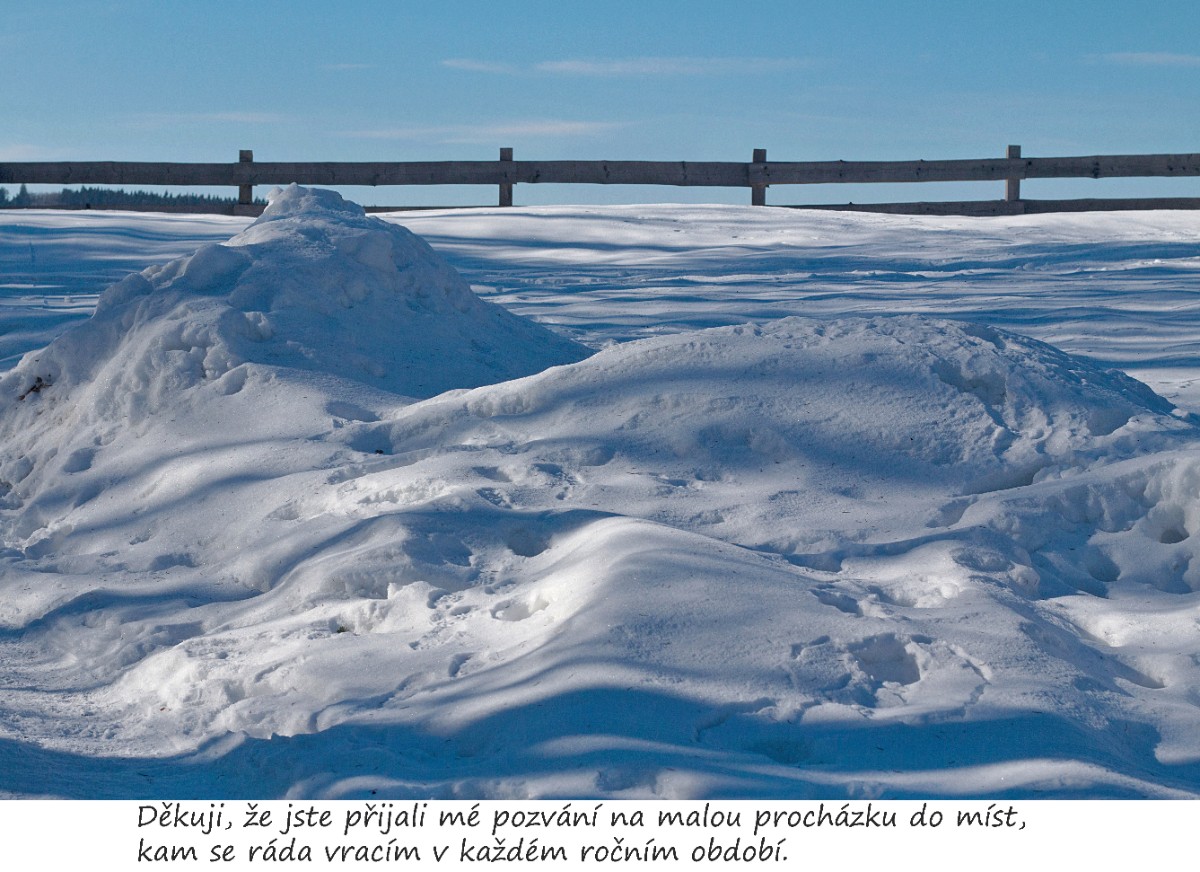 V letošní zimě převládají dny bez slunečního svitu a sněhové pokrývky. Dokonce ani řeka nezamrzla a rampouchů jsem mnoho neviděla. Ale několik málo dnů se vydařilo. Viděla jsem krajinu pod bílou peřinou, sníh se třpytil a pod nohama křupal. Bohužel zimní idyla nikdy netrvala dlouho.