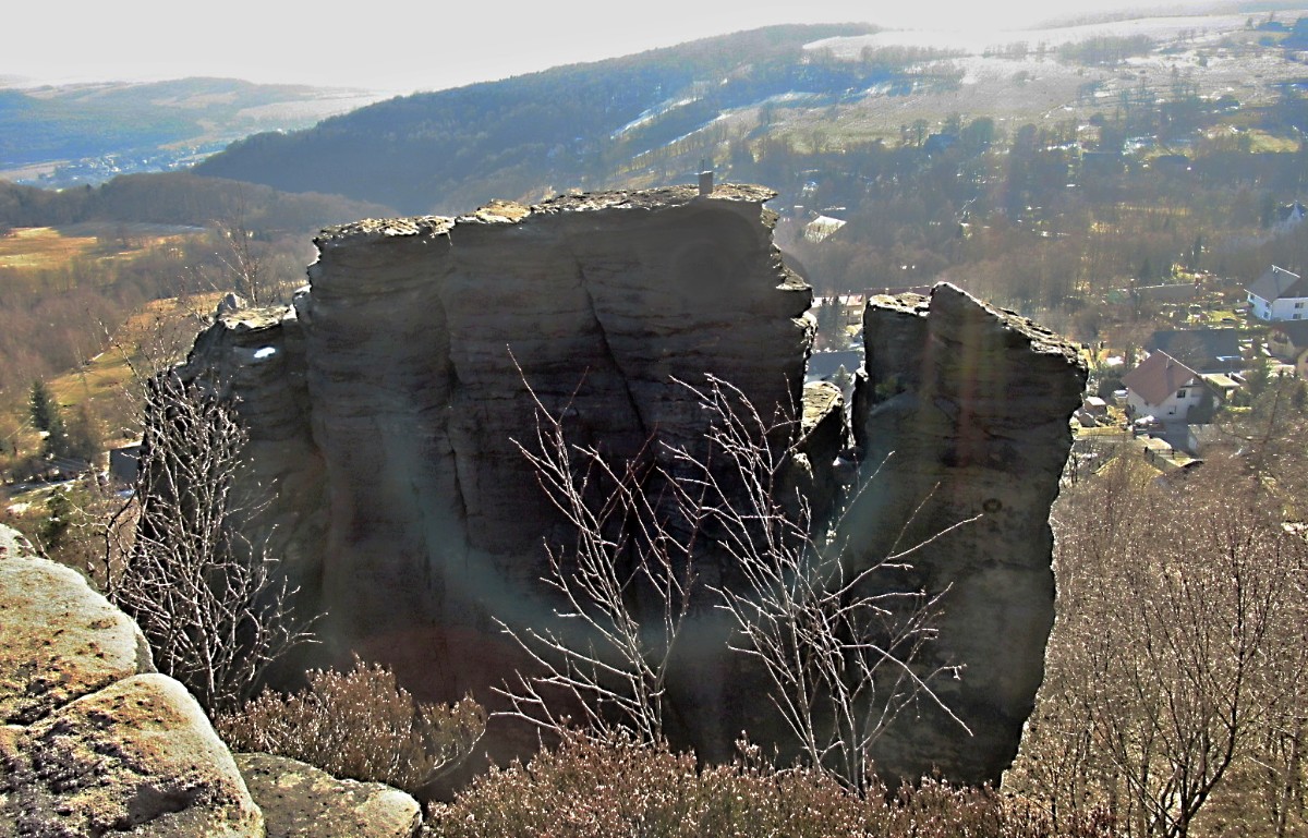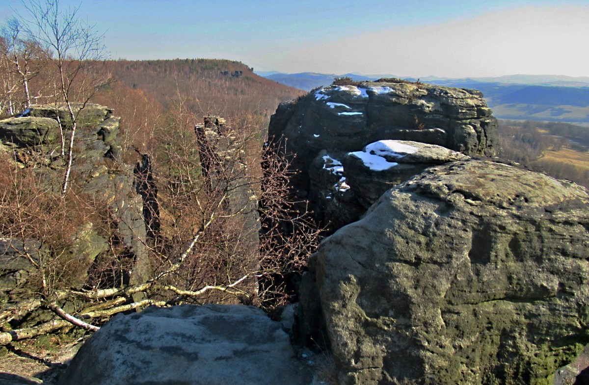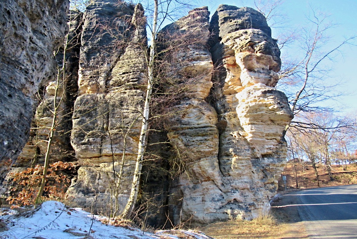 Tentokrát to nebyla žádná rovinka, ale přednost jsme dali kopcům. Volba padla na Tiské stěny, nejsou daleko a už jsme tam spoustu let nebyli. Vybavili jsme se teplým oblečením a pro jistotu i čepicí a čelenkou, to kdyby si to vítr přece jen rozmyslel a chtěl se nám dostat na kůži. A dobře jsme udělali, jenom, co jsme vystrčili hlavu z auta, dal o sobě vědět.