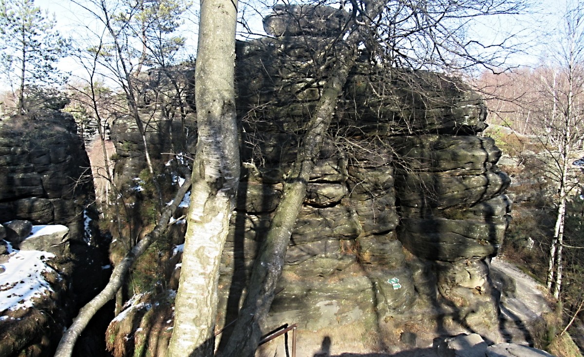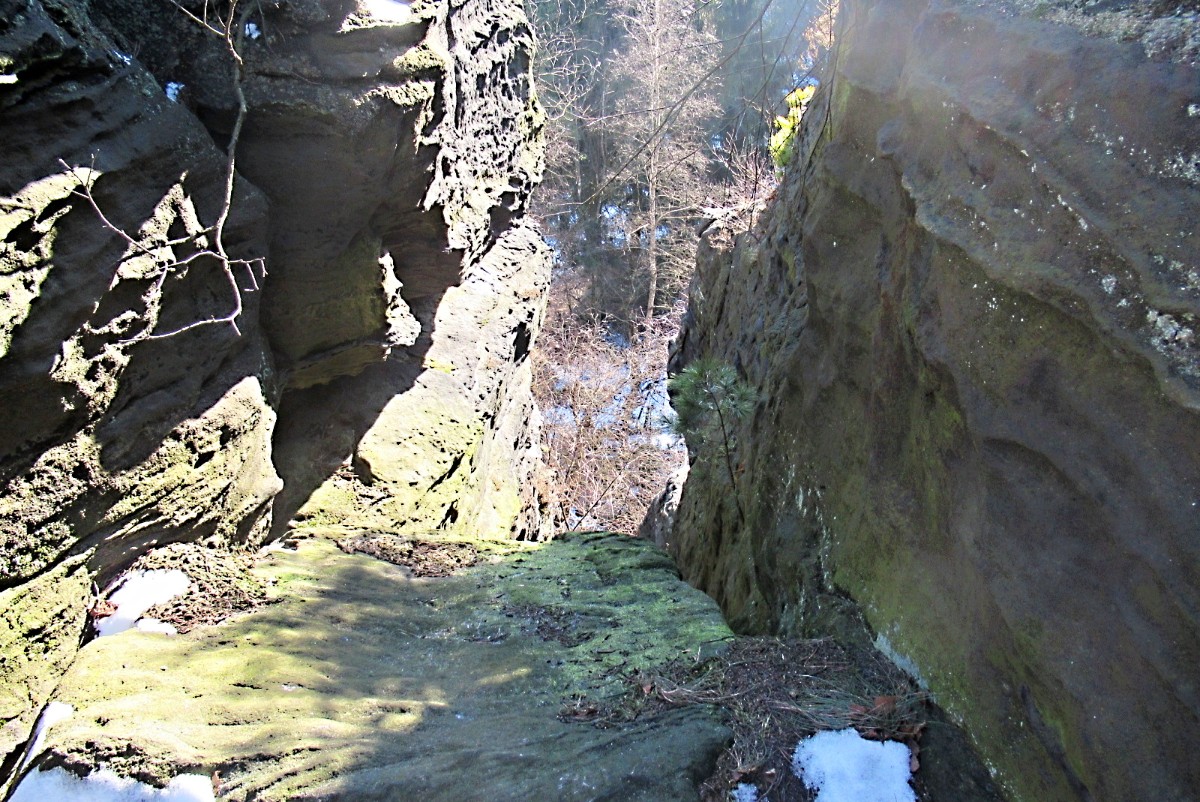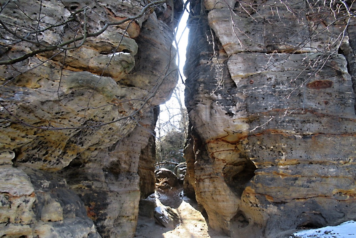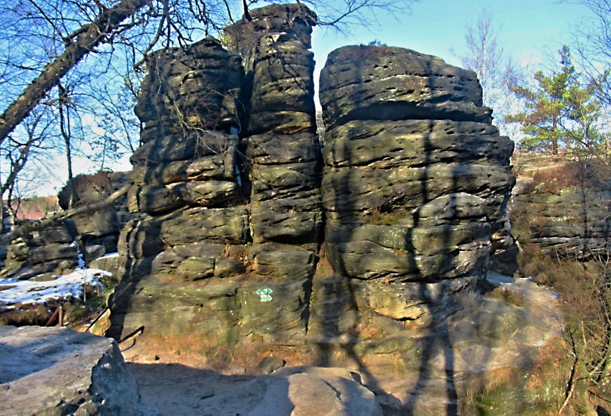 Myslím, že Skalní město v obci Tisá moc představovat nemusím. Ale pro jistotu pár informací napíšu. Tiské stěny jsou pískovcové skalní město v blízkosti NP Českosaské Švýcarsko, jsou přírodní památkou, tyčí se do výše 70 m a nejvyšší bod dosahuje 613 m. Hlavní cesta vede z Tisé, my jsme dali přednost  vstupu u Turistické chaty, která je na konci celé trasy u silnice, vedoucí na Sněžník. Veškeré informace jsou dostupné na stránkách obce Tisá, nebo na Wikipedii.