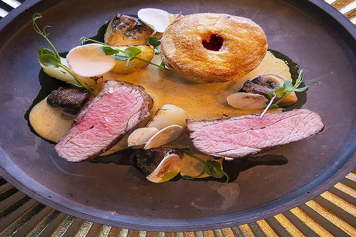 Že Svatek zdaleka neztratil tah na branku ani sílu ve zvěřině, potvrzuje v Illusonu třeba už „pouhý“ předkrm - hřbet z jelena s marinovanými houbami, šalotkami a rebarborou.