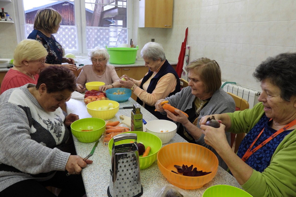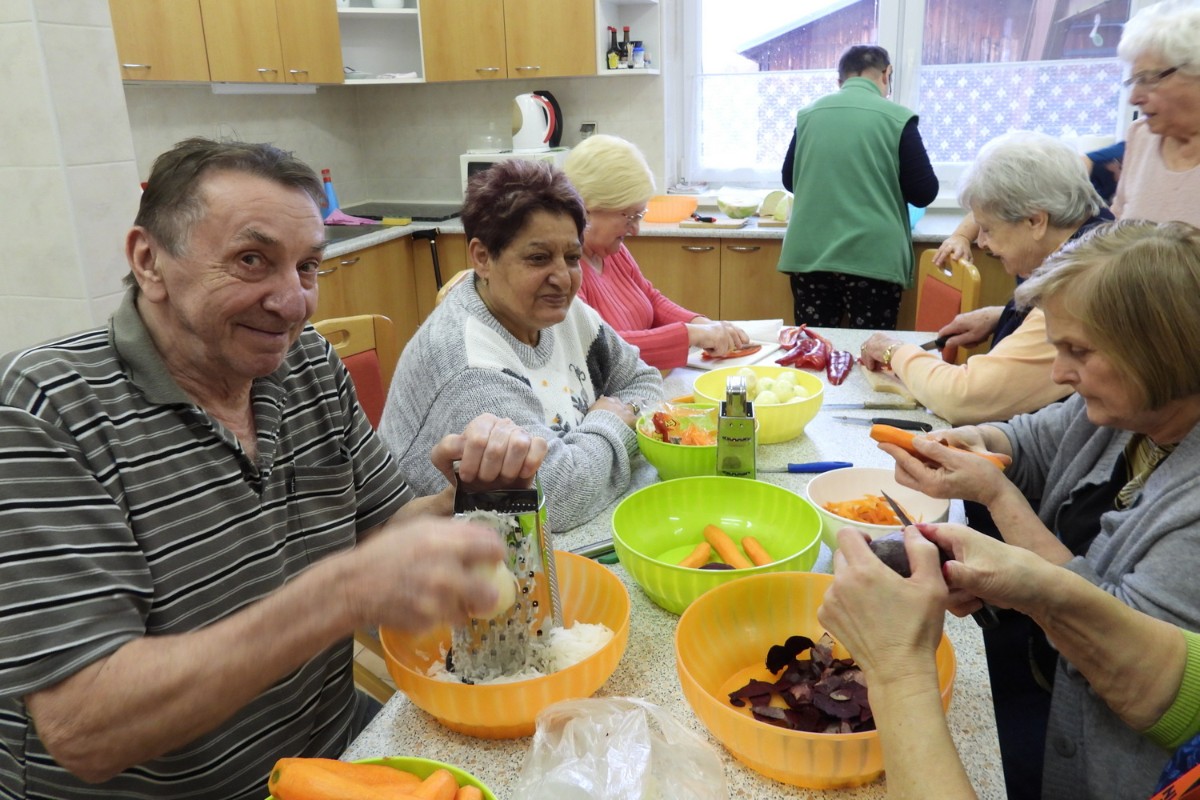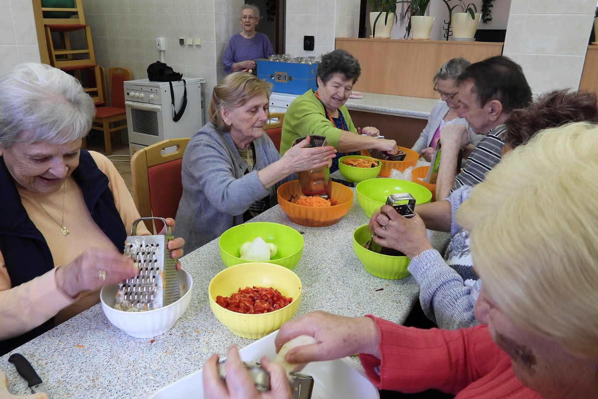 To bylo tak, jsem doma v kuchyni a krájím a strouhám zeleninu na fermentování neboli kvašení. A v tom mě napadne, že bychom mohli zeleninu připravit i s klienty v našem pečovatelském domě, kam chodím číst. S nápadem při nejbližší příležitosti jdu za paní ředitelkou. Souhlasí a hned se ujme celé organizace. Co myslíte, kolik se nás na této akci sešlo? Mohli jsme si zpívat: je nás jedenáct! Sice jsme nezpívali, ale veselo bylo, to jo. Očistili, nakrájeli, nastrouhali a napěchovali do sklenic 7 (slovy: sedm) kilogramů zeleniny. Povedla se báječně a chutnala všem.