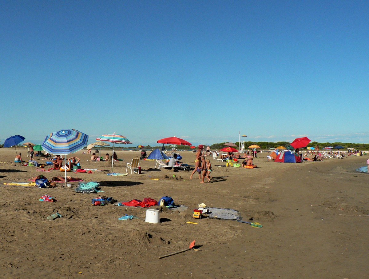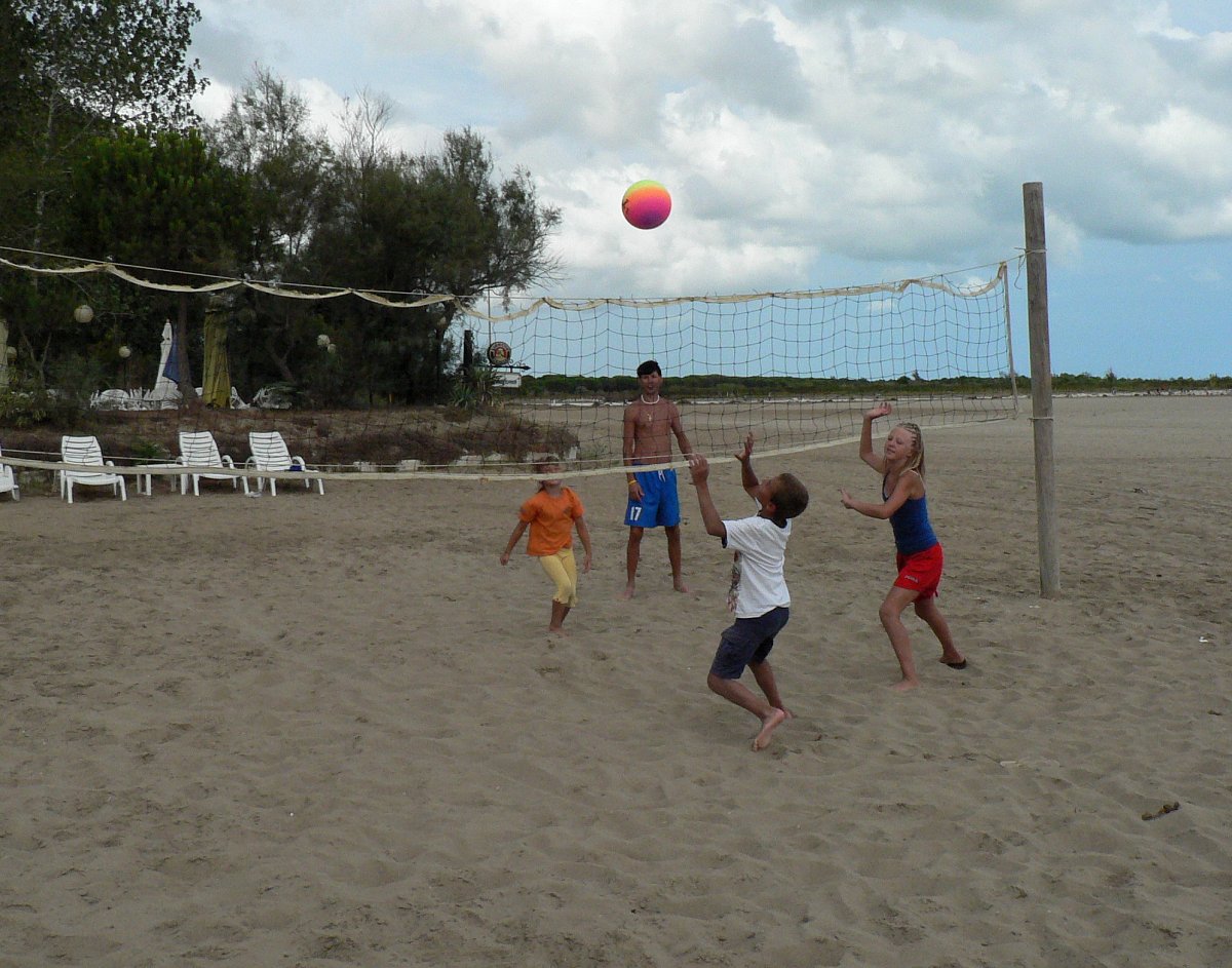 Moře v Itáii není tak krásně modré jako v Chorvatsku, je zabarveno všudepřítomným pískem, ale příchod do něj je pozvolnější, proto jsme se nemuseli bát, že se nám ti naši svěřenci utopí.